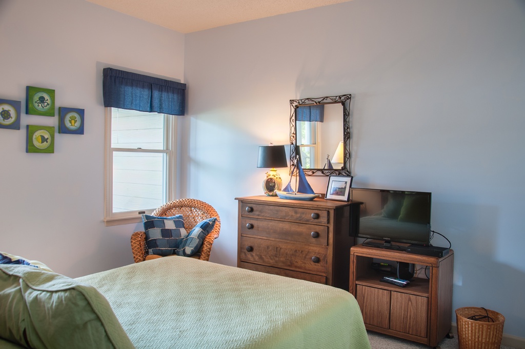 Relax in this lovely first-floor condominium in the beautiful Mirage complex in Corolla Light. A romantic queen master bedroom suite features a large jetted tub. A great location... just a short walk to the beach and the Corolla Light Indoor Sports Center is across the street and overlooks a fish-stocked pond with turtles! Also, the sound side pool is a very short walk. Recharge at 'The Bates Motel.'