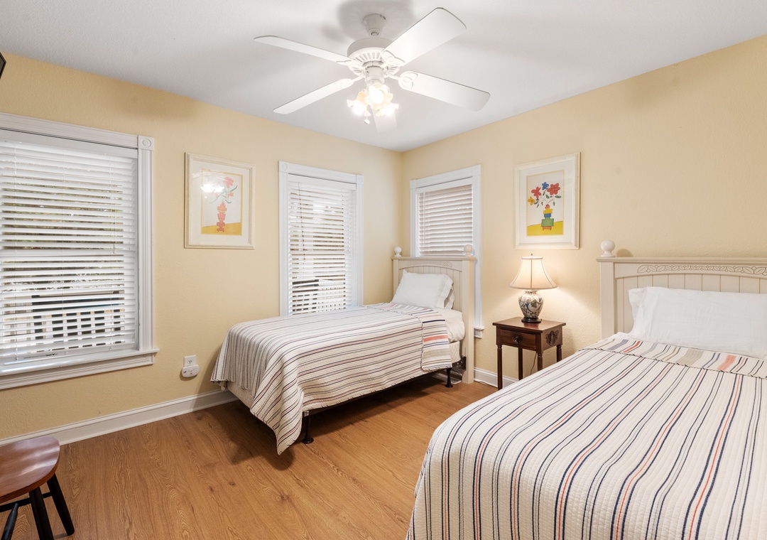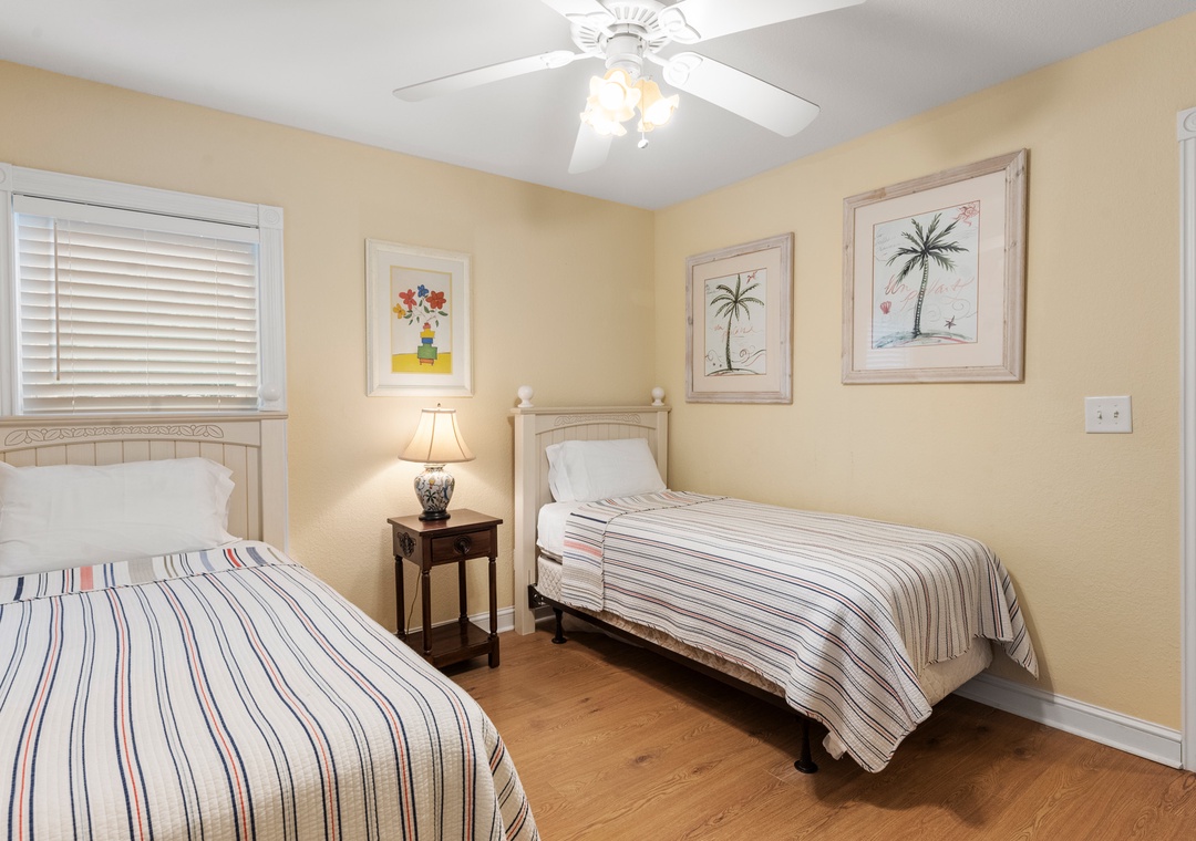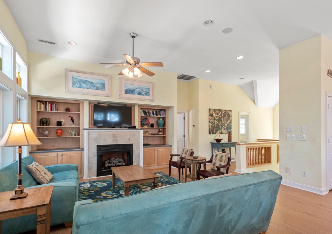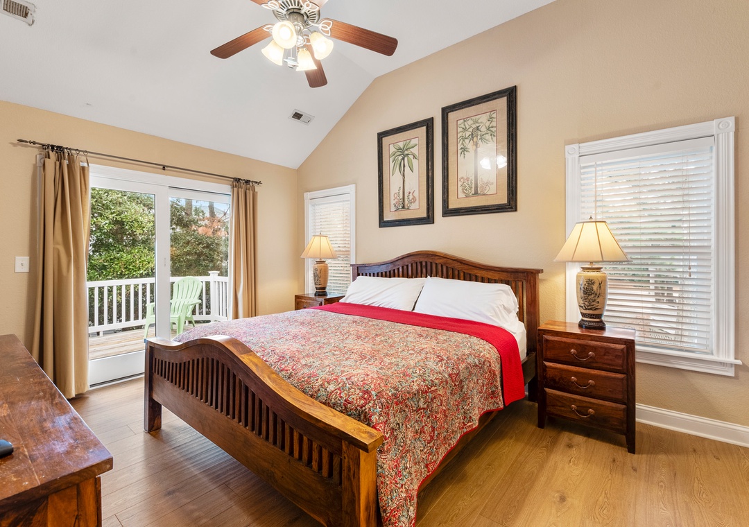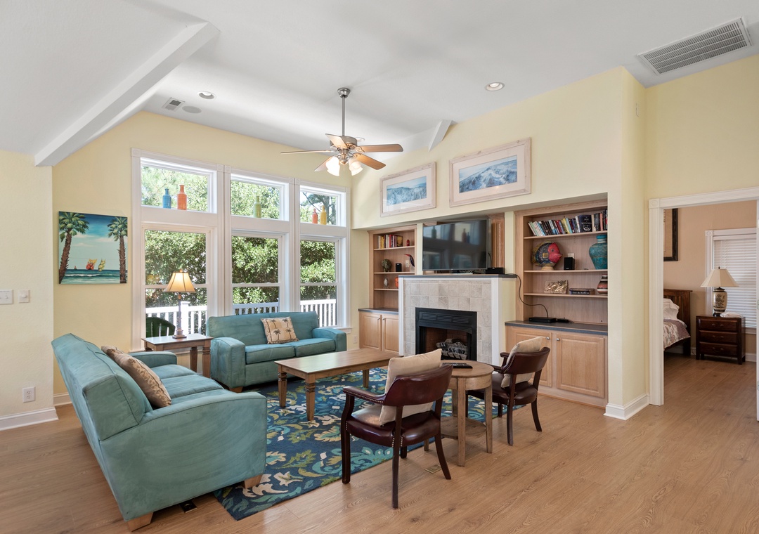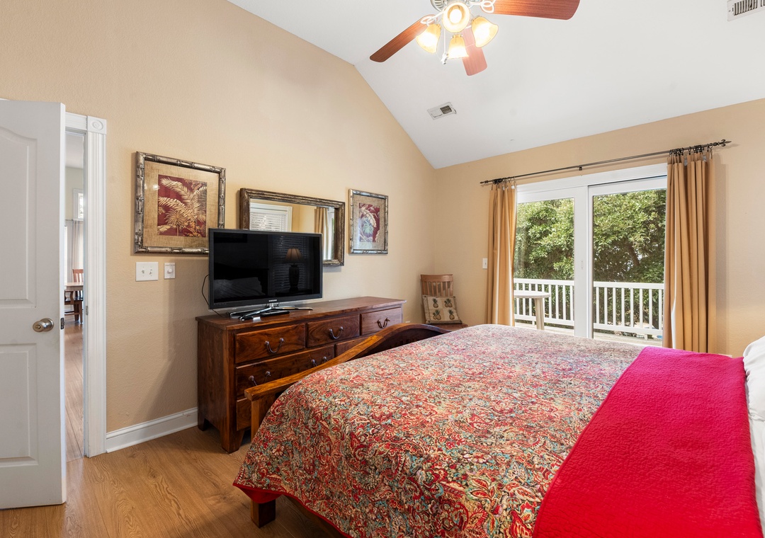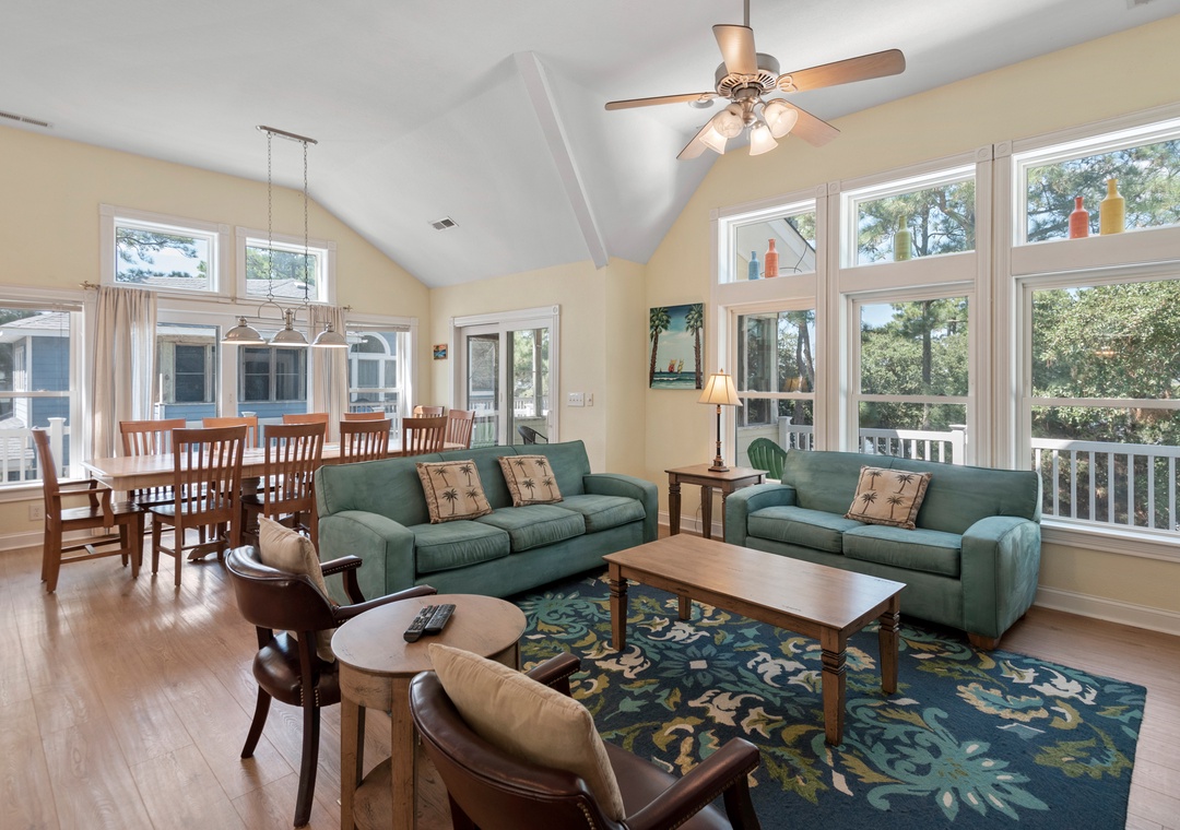 A true oasis for vacationers who are both beach lovers and watermen, Plum Paws offers a variety of amenities for endless outdoor activities and adventure. This spacious six-bedroom home is perfect for larger groups or multiple families vacationing together, featuring three master suites and two dens. An open-concept layout and vaulted ceilings in the main living area on the top level create an ideal space for entertaining and spending quality time with family and friends. A screened porch and decks on the west side of the house provide plenty of outdoor living space overlooking the private pool area.