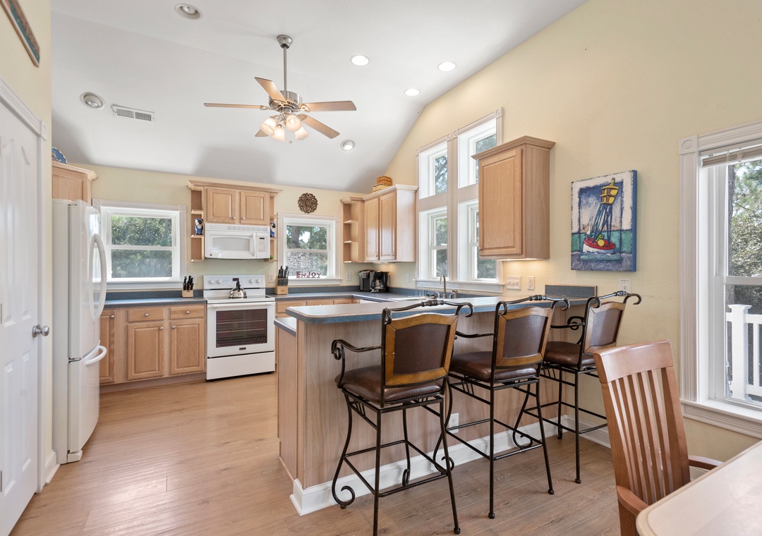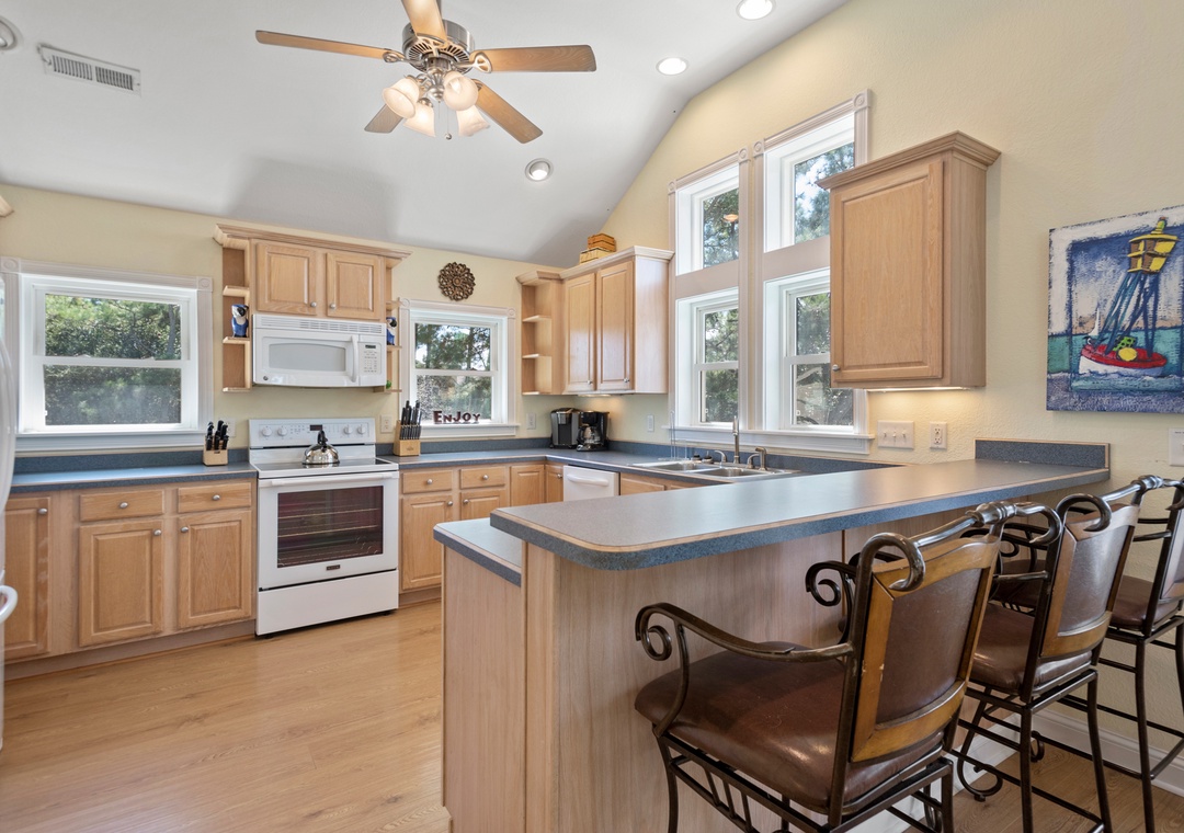 We absolutely loved our stay at Plum Paws this past week! The house had everything we needed and we especially appreciated the extra touches --incredible variety of books and puzzles, well stocked kitchen, great outdoor furniture on every level, lots of ceiling fans and extra hooks in the bedrooms for towels! It was so helpful to be able to bring our dogs as well! The location on the sound was perfect for viewing the fireworks on July 4th and just enjoying walks along the water. We never had a problem getting a trolley to the beach and it wasn`t a bad walk or bike ride on our own either! We enjoyed our traditional dinner at the Oceanfront Grille, frequent visits to the Juice Jar and also a great last night with the Outer Banks Boil Company who we highly recommend!- Reviewed On: 7/1/2022