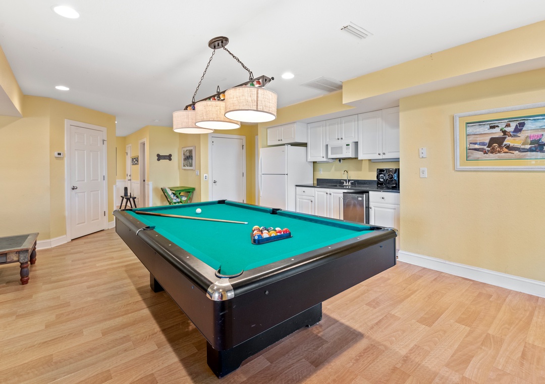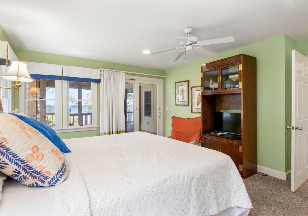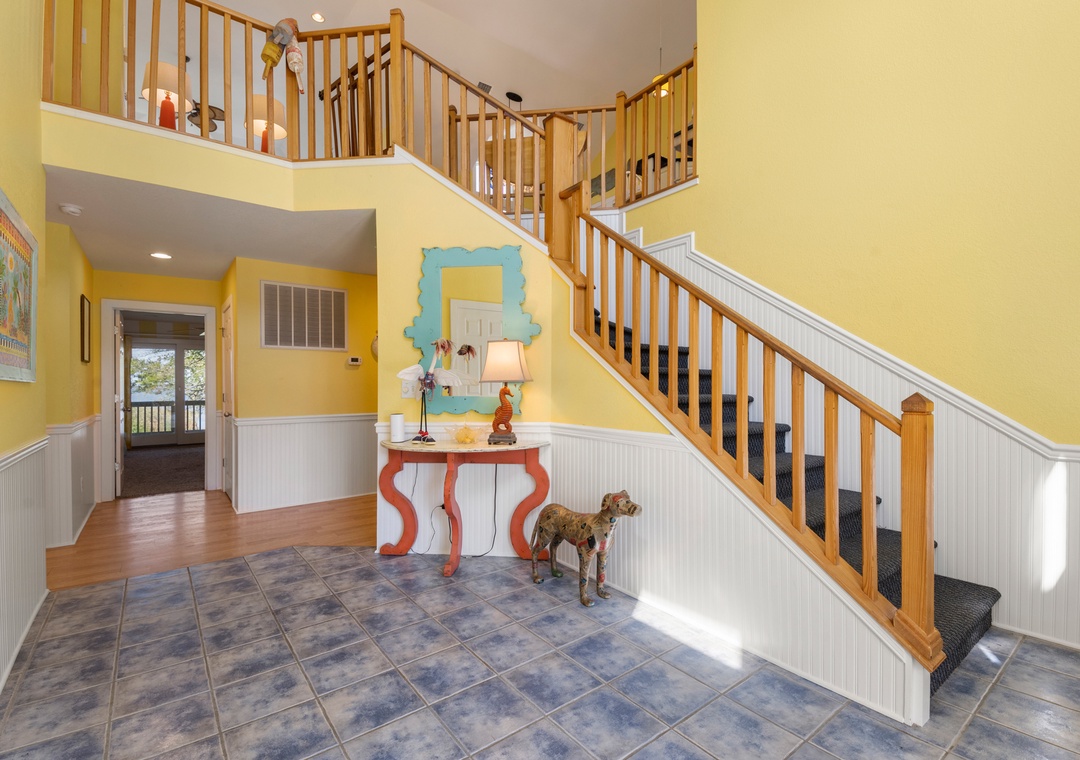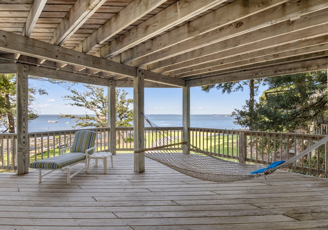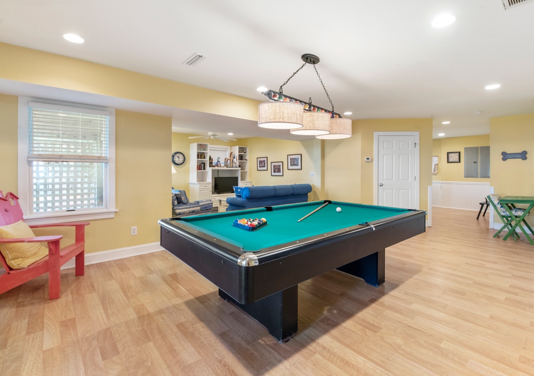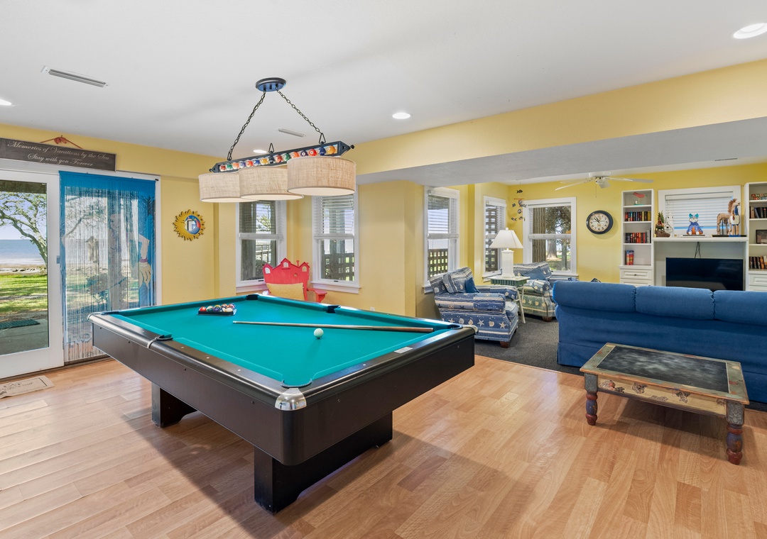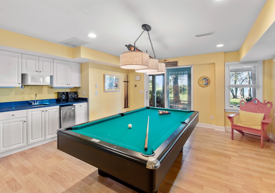 The mid-level consists of four more bedrooms (including two ensuites), three of which provide direct access to the soundfront covered deck. Downstairs, the entire ground floor is dedicated to indoor entertainment, where guests can watch a movie or the big game in the den or shoot pool on the billiard table. Use the kitchenette for convenient snacks and drinks, and the additional full-size refrigerator for storing extra groceries or the catch of the day. Animal House is equipped with an elevator, ideal for guests with mobility issues. Skip the stairs and use it to send luggage to the upper floors. As the name might suggest, Animal House is dog-friendly so your fur babies can accompany you on the vacation of a lifetime.
