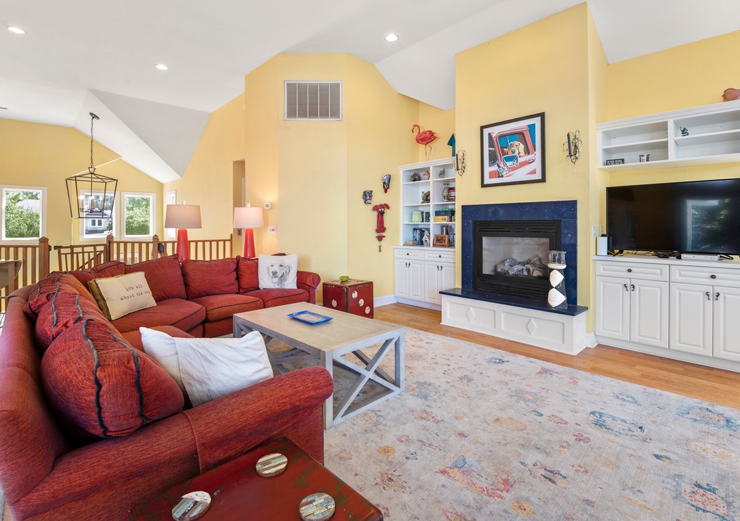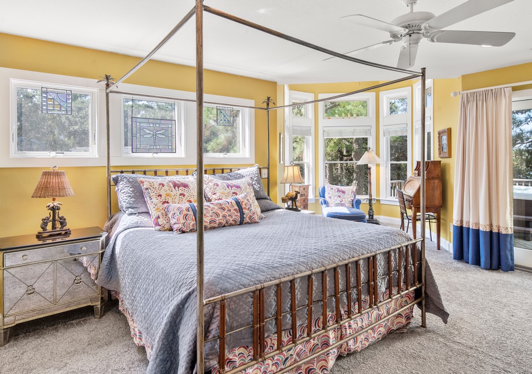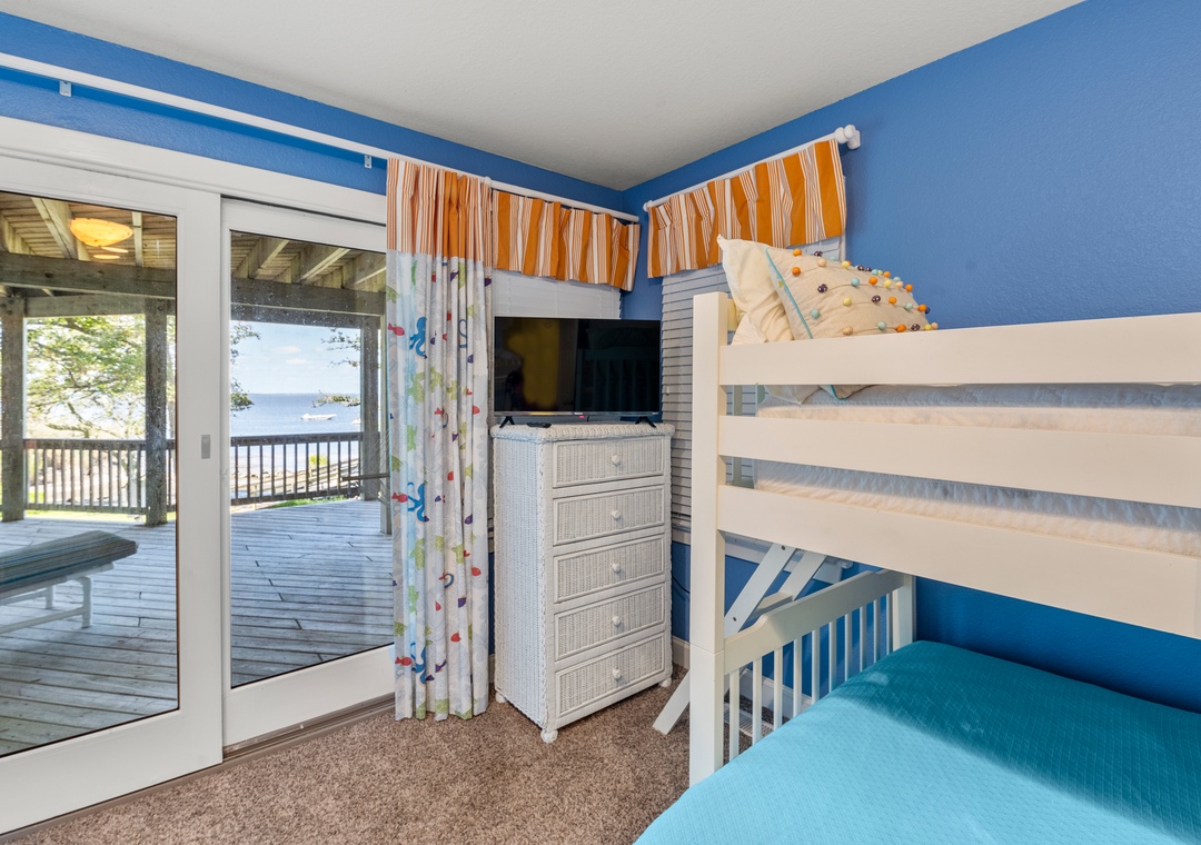 A reverse floorplan, west-facing sun deck and windows galore make the most of the soundfront location. After a day at the beach or exploring the resort, come home and gather in the comfortably furnished, open-concept great room. It leads out to an expansive waterfront deck with a bubbly hot tub. When you're not dining out, prepare meals in the well-stocked kitchen with stainless steel appliances. A double oven, two sinks and two dishwashers make cooking and clean up for large groups a breeze. The primary bedroom is also located on the top level, offering the same stunning view and convenient deck access as the great room. It includes a cozy nook perfect for reading or catching up with work. A generously sized private bath features a double vanity, jetted tub and separate shower.