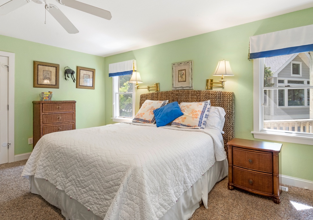 The house was clean & roomy, and the beds were comfortable. The air conditioning worked well on the bottom 2 floors, but the top, main floor, got a little warm most days whether we used the ovens or not. It was hot and sunny those days, however. We enjoyed the location of the house and the view of the sunset from the back deck was amazing. We enjoyed the beach, the pool (good food and drinks at the pool as well), and playing Pickleball. It would be good if there were more Pickleball courts because it has become very popular. The trolley was a nice convenience too. Our only "complaint" was there was just minimal supplies for us for the week. We were informed of this ahead of time, but to just get one roll of toilet paper per bathroom, for a party of 10 adults for the week, & 1 roll of paper towels, was just not enough.. Also, no spices or condiments in the kitchen and no laundry detergent in the laundry room. These are minor "complaints" & overall we really enjoyed our stay.- Reviewed On: 7/20/2024