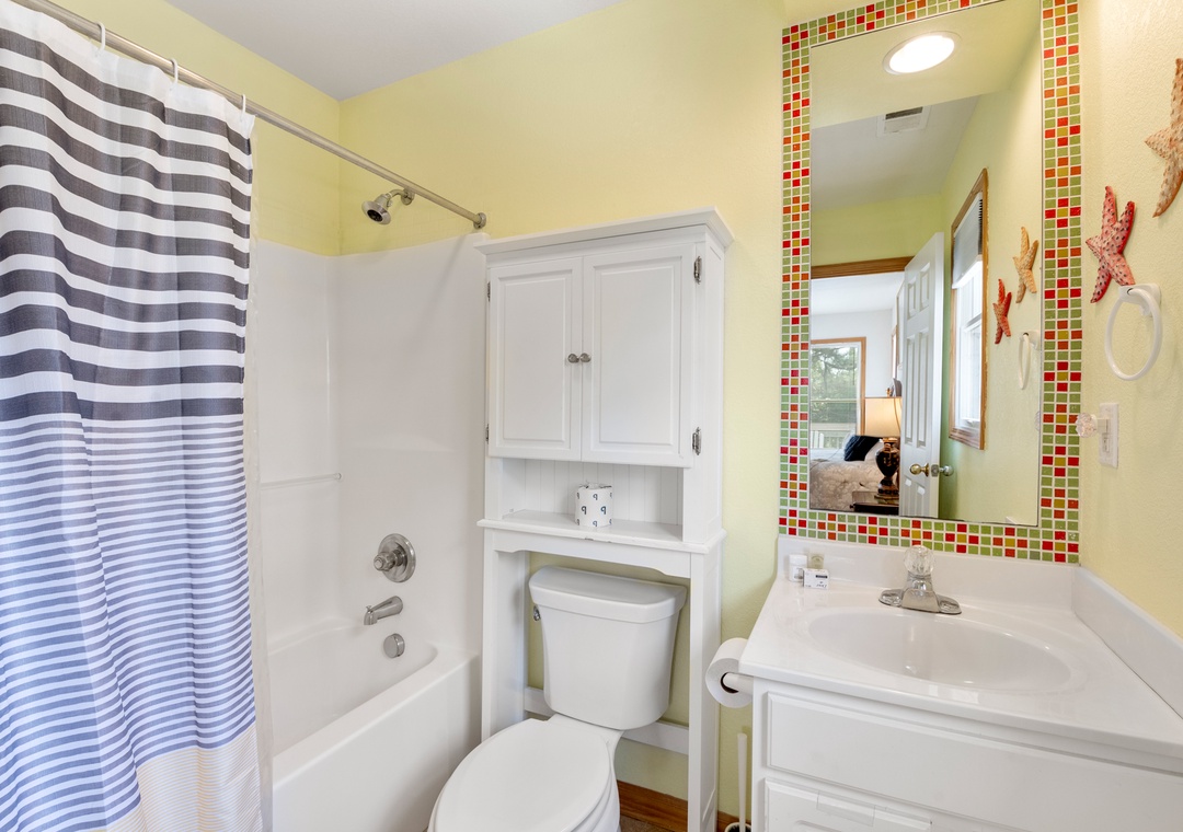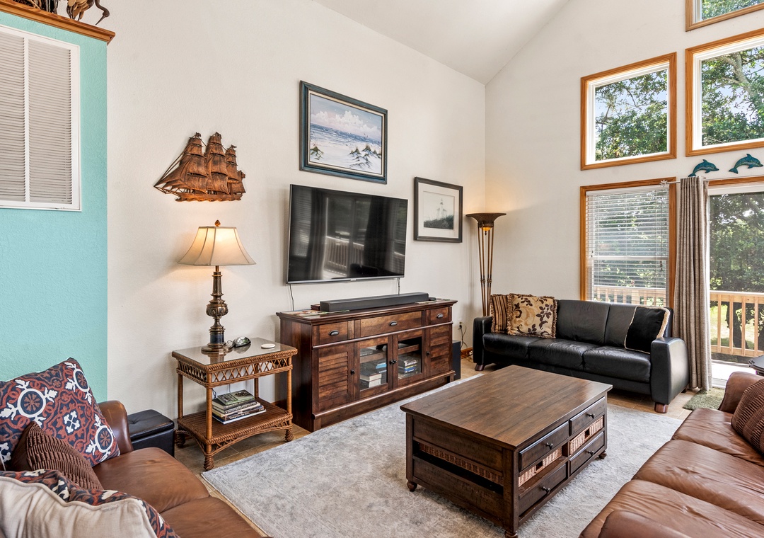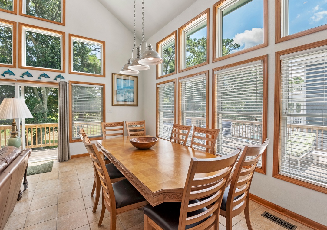 Back on the soundside, Sunshine Daydream is less than 400 feet away from the Corolla Light Sports Center. Take a one-minute walk to this newly refurbished 36,000 sq. ft. facility that includes an indoor pool, indoor and outdoor tennis courts, a fitness center with showers and a sauna, racquetball, walleyball, ping pong, and weekly classes/activities. The community's outdoor soundfront pool is located directly across the lake. From there, you'll have access to miles of nature trails and a soundside pier for fishing and crabbing.