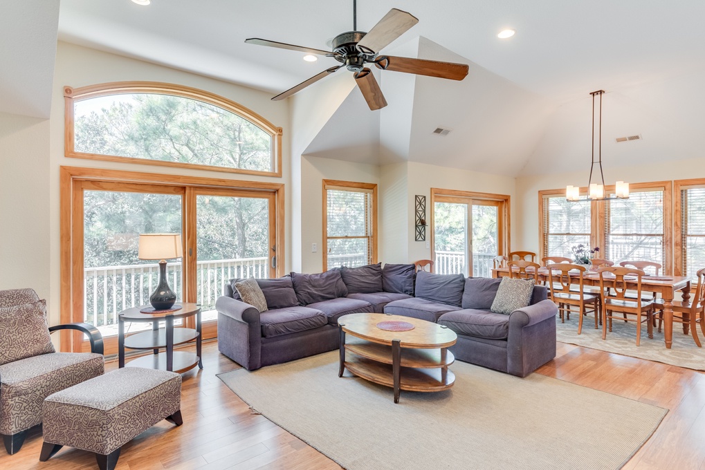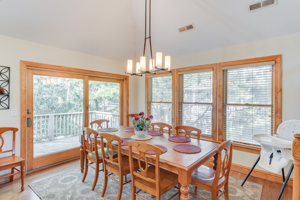 Nestled in the Corolla Light community, this vacation home offers immediate access to several of the resort’s featured amenities. Just steps away, you can be upping your fitness game at the indoor sports complex, swimming at the soundside pool, enjoying a meal in the picnic area while the kids play on the playground, taking selfies on the pier at sunset or hopping on a trolley headed for the ocean front pools, outdoor courts, restaurant/bar and the beach right across the road!