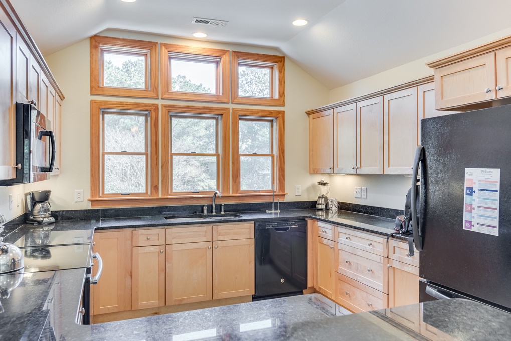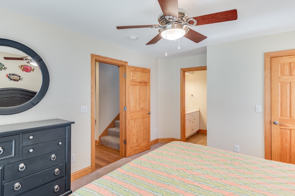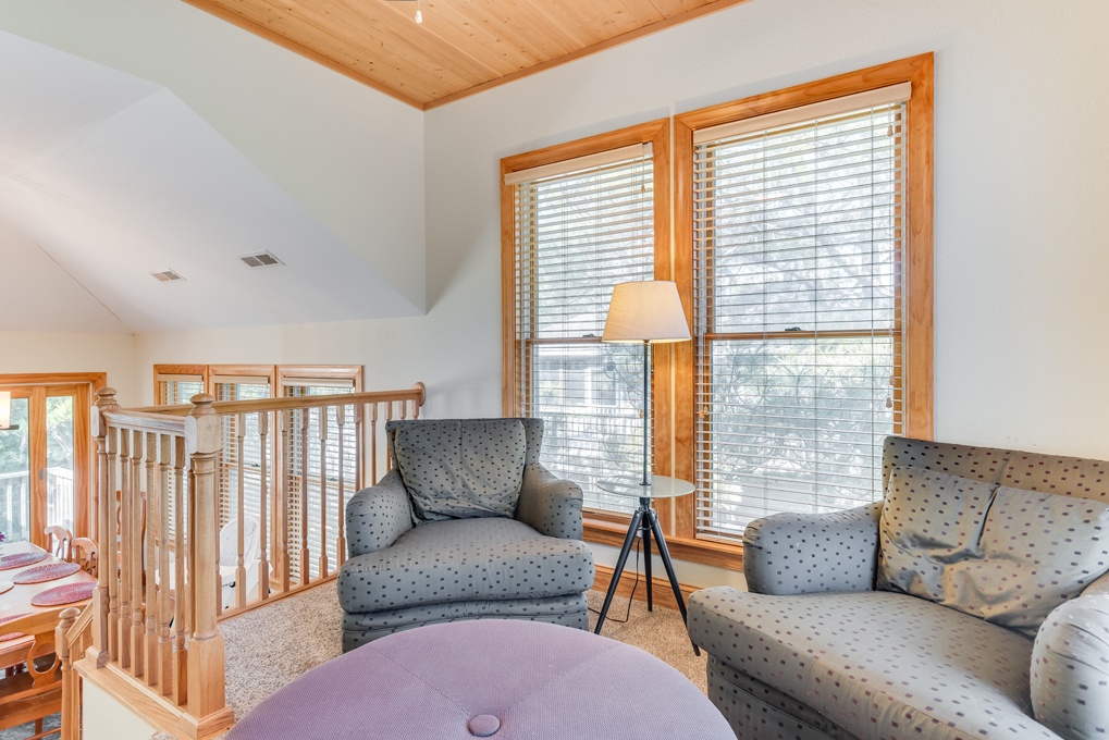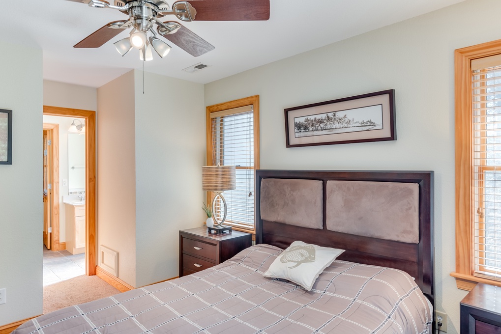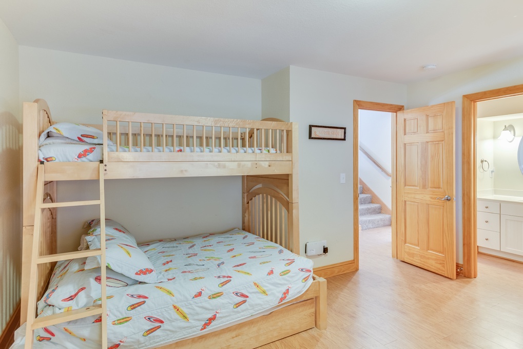 This house features five bedrooms, all of which have access to their own bathroom from the bedroom! The loft adjacent to the dining area is a magnet for kids who like to game, or the loft can be a haven for that introvert who still enjoys being in the middle of everything.