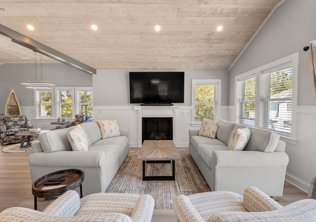 This house also features five bedrooms, all of which have access to their own bathroom from the bedroom! The sitting area is a magnet for anyone who likes to be removed from the crowd but still be able to observe and participate in group conversations. It is a great place to enjoy a cup of coffee, read a book or play a quiet game.