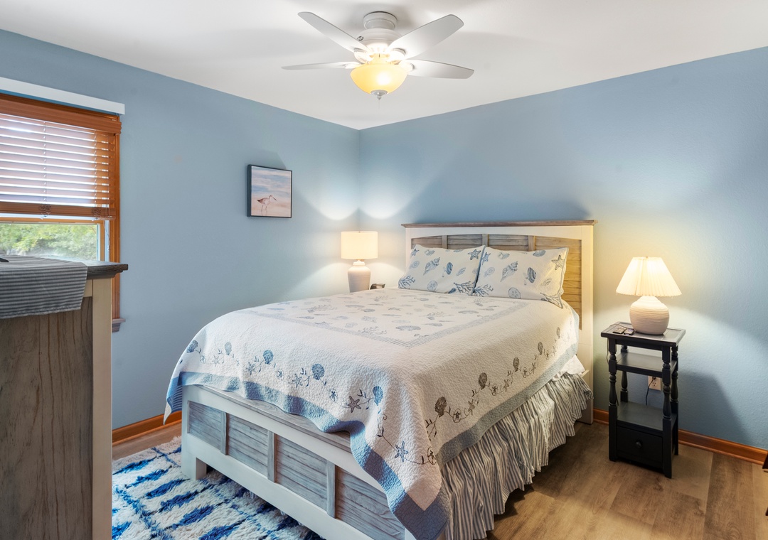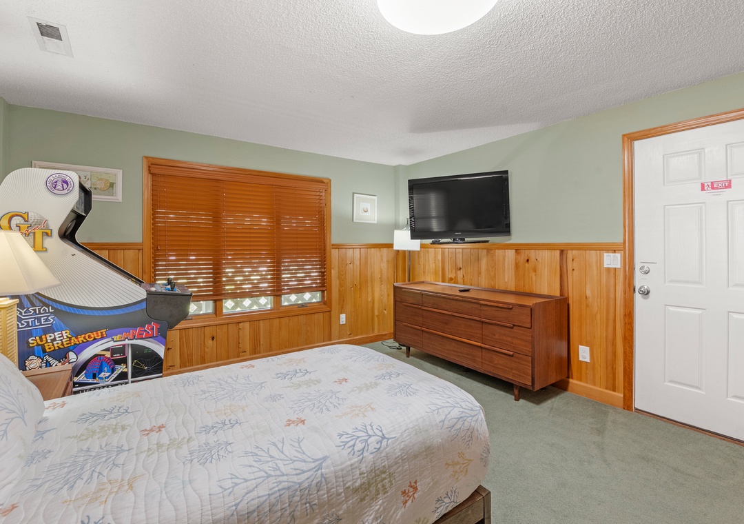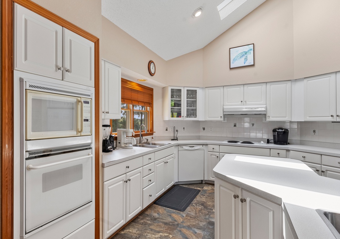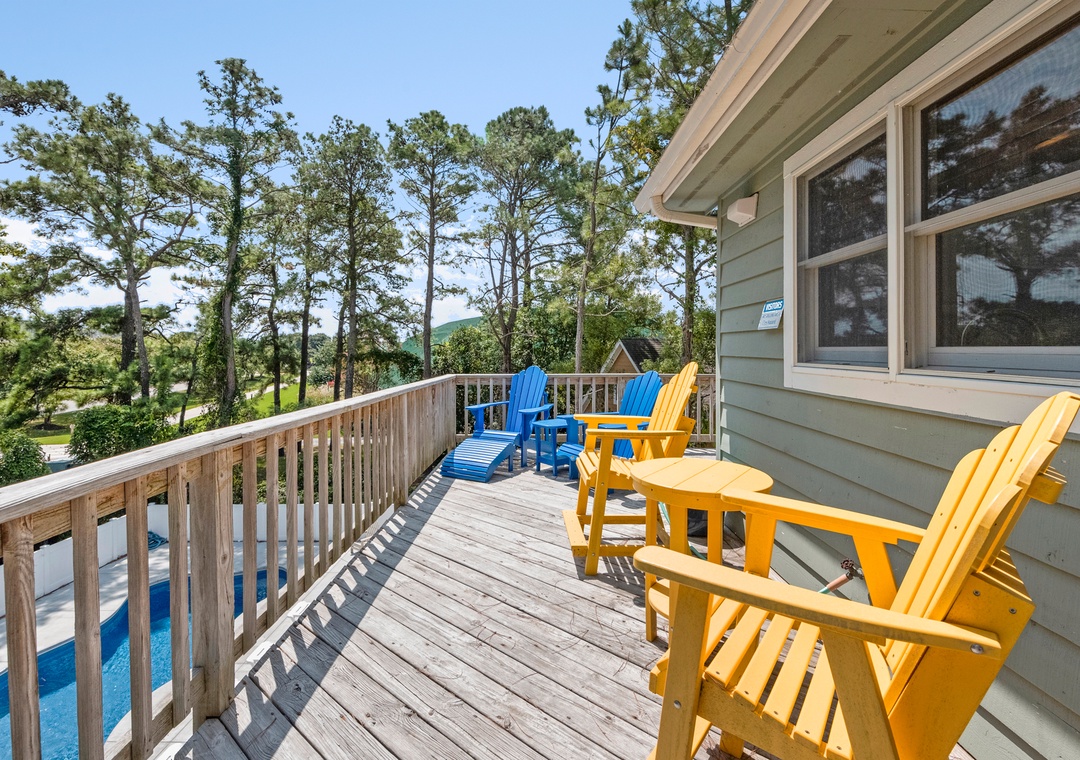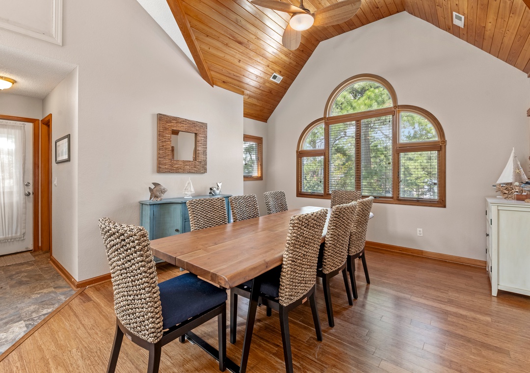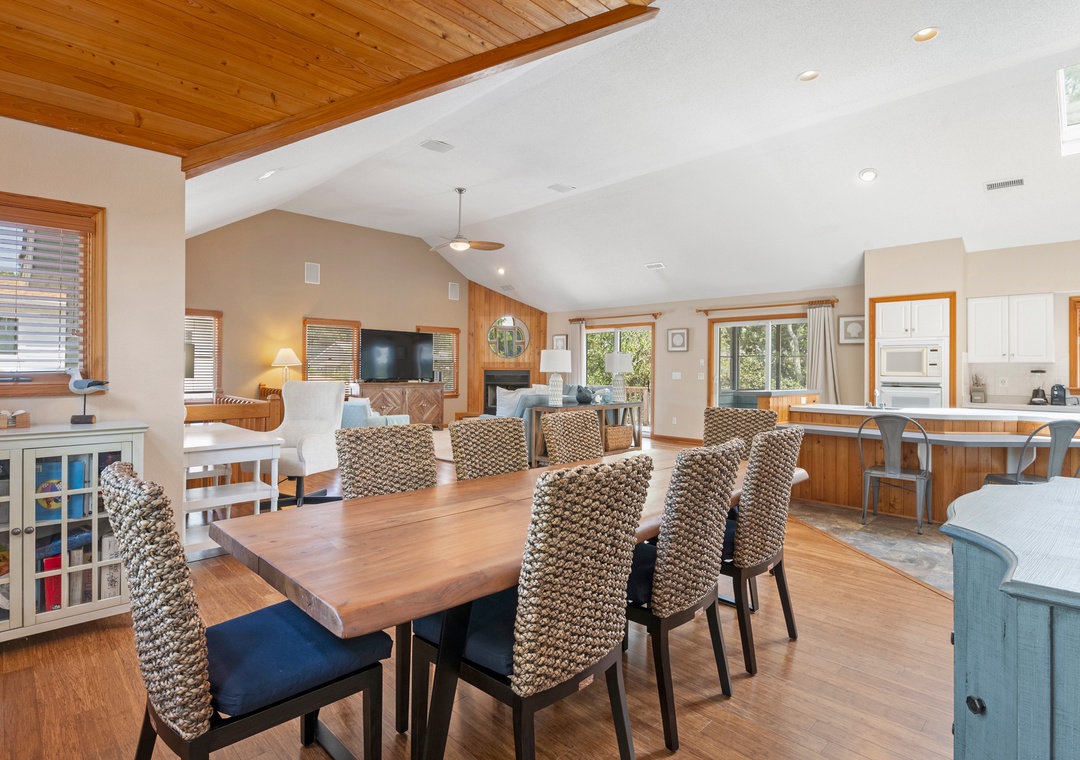 Make your escape to Hide Away Heaven, where your next Outer Banks vacation will be a secluded paradise. In addition to exclusive access to a variety of Corolla Light amenities, your family will enjoy having their own private pool and hot tub right at the house. Two levels of decking, including two screened porches, provide plenty of opportunities for outdoor living. Inside, a spacious great room is beautifully furnished with gorgeous wood flooring throughout. A vaulted ceiling with wood paneling in the dining area along with a stunning arched window add to the warmth and character of this one-of-a-kind home. The fully stocked kitchen has everything you'll need for preparing meals at the house, and the open-concept layout allows the chef in your family to still be part of the group even while cooking. The living area is equipped with a desk, where guests can stay caught up with work or school remotely.