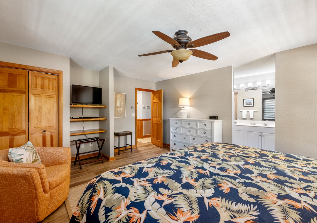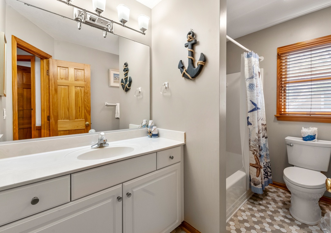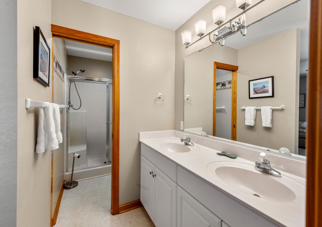 On the mid-level you'll find two matching king suites - ideal for multiple families or couples looking for extra privacy. They both include deck access, an ensuite bath and access to the jacuzzi room where you can take a relaxing soak in the jetted tub. Two additional bedrooms and a hall bath on this level will comfortably accommodate family and friends, and a fifth bedroom with private bath on the ground level is perfect for kids.