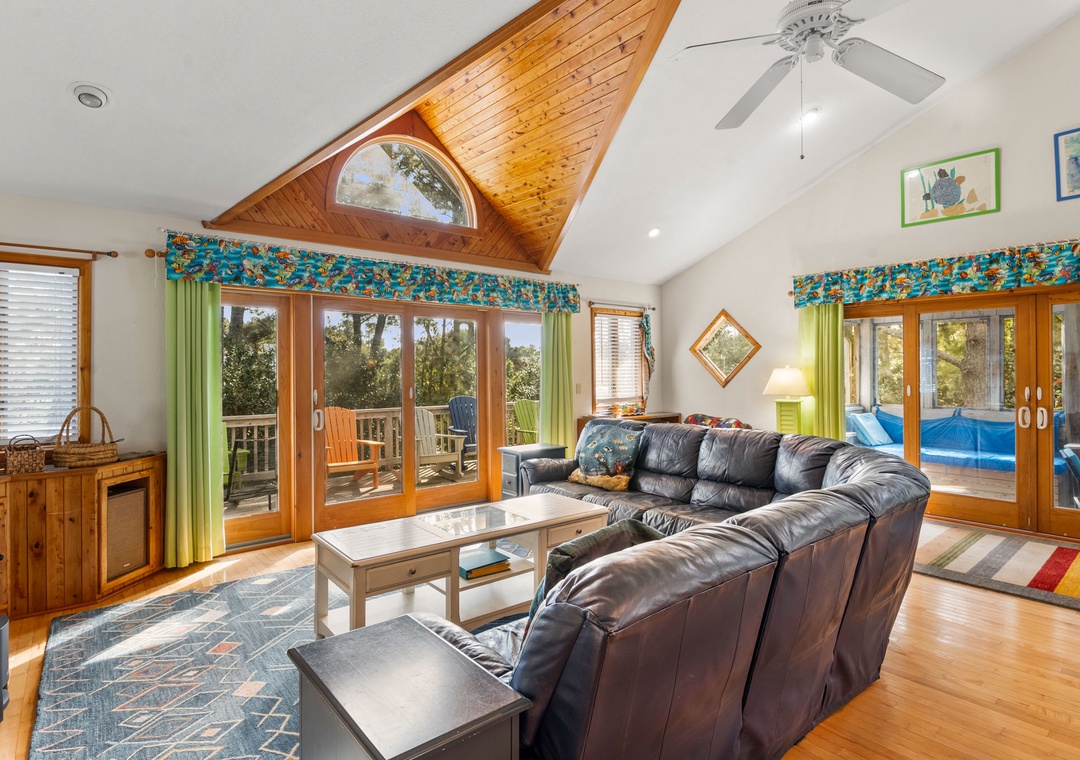 Relax. Recharge. You will want to come back time and time again. This 5 bedroom vacation home is located in Corolla Light, with resort features that include community pools, tennis, indoor sports center and indoor pool, trolley service during In season, and more. You'll have pleasant dreams when you drift off in the hammock at this delightful beach cottage. With the peaceful surroundings yet all the amenities of the Corolla Light Resort and only a short walk to the beach, Dunewood will easily become your vacation home of choice. Other amenities include a private hot tub, jetted tub, TVs, Blu-ray player, WiFi, wood-burning fireplace, hammock, fish cleaning table, and charcoal grill.
