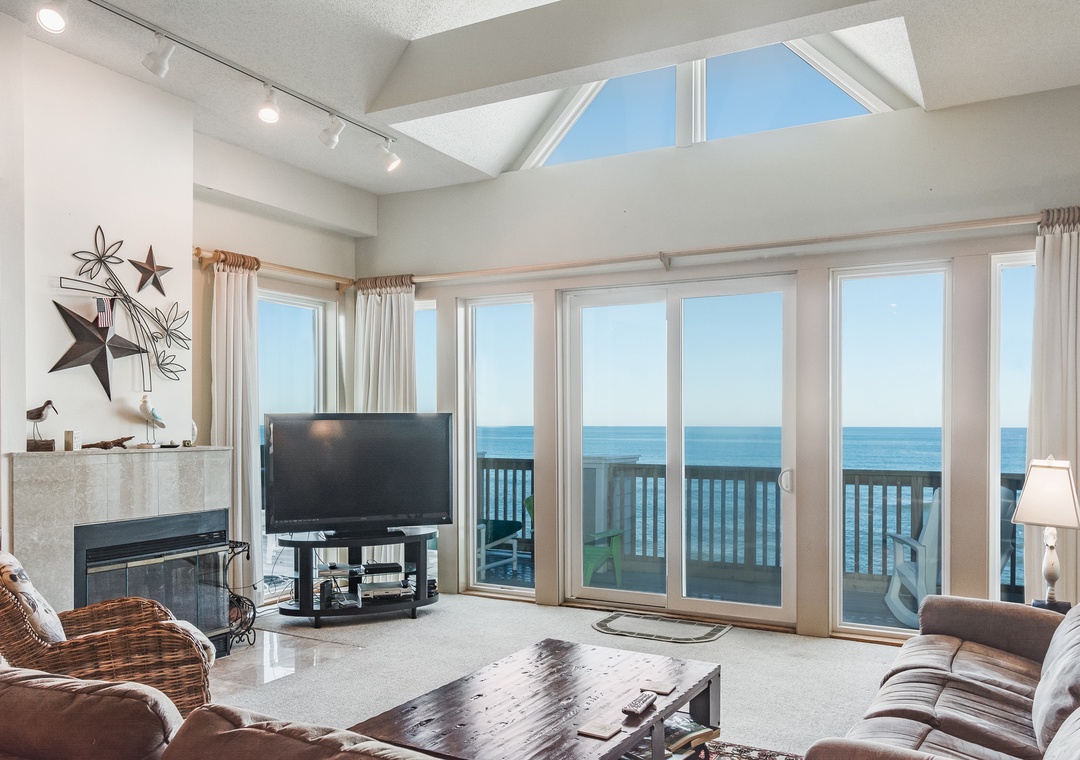 Cozy up by the wood-burning fireplace during cooler evenings, creating a warm and inviting ambiance throughout the unit. The large oceanfront deck provides the perfect spot to relax and absorb the breathtaking coastal scenery, whether you’re enjoying your morning coffee or unwinding with a book.