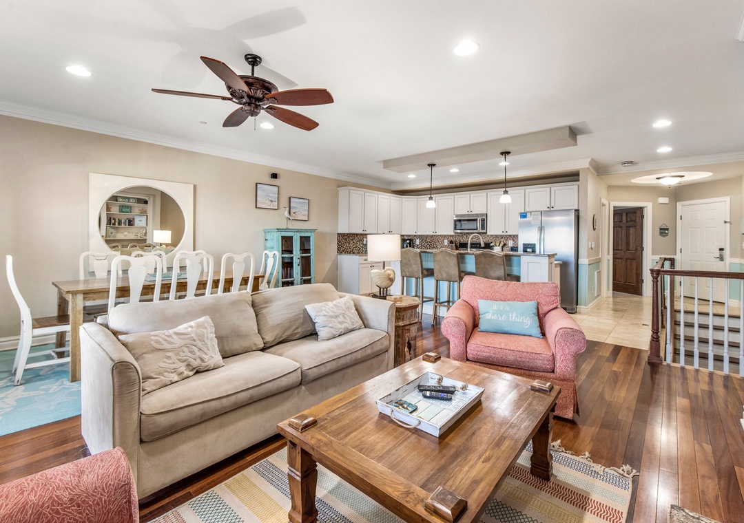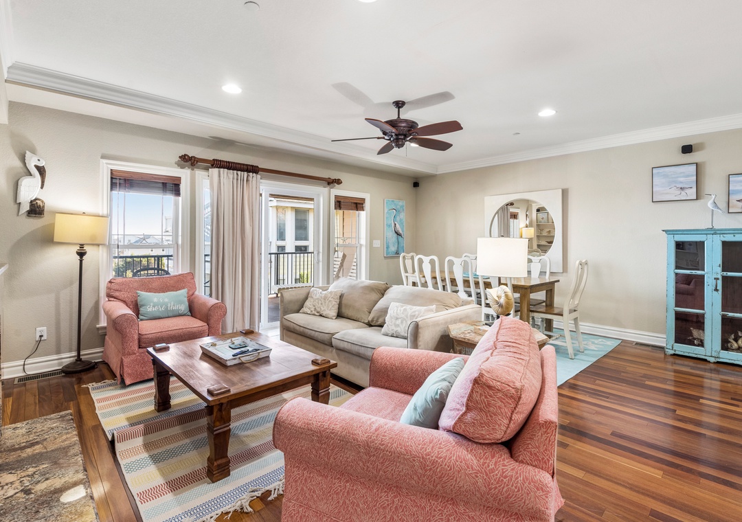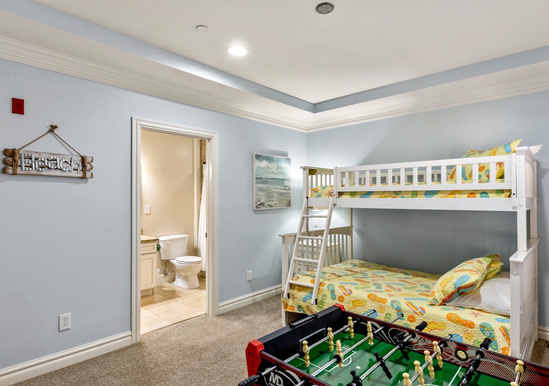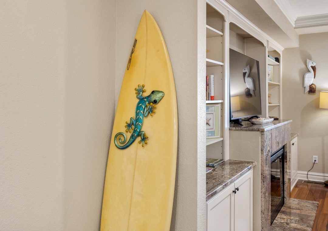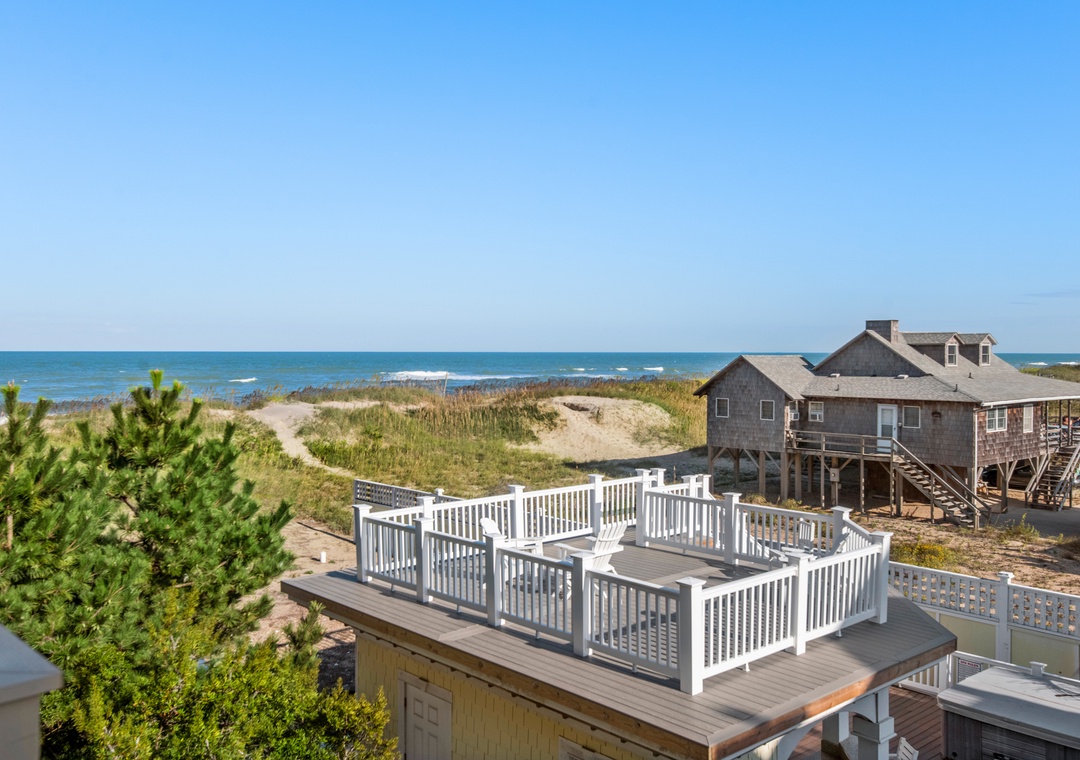 Surfing Gecko is an elegant oceanfront townhome located in the sought-after Croatan Surf Club in Kill Devil Hills. Equipped with a great room, kitchen, three bedrooms, three full baths and in-unit laundry, Surfing Gecko combines single-family privacy with resort-style amenities. Upgrades include a gas fireplace and hardwood floors in the living area, granite countertops and stainless steel appliances in the kitchen, and coastal-inspired furniture and décor throughout. A terrace with an ocean view is located just off the living area, where you can watch the sunrise or listen to the waves. Two of the three bedrooms include en suite baths for plenty of privacy, and kids will love the foosball table in the bunk room. The building features three elevators, ideal for guests with mobility issues and an added convenience for sending luggage and groceries to the third floor.