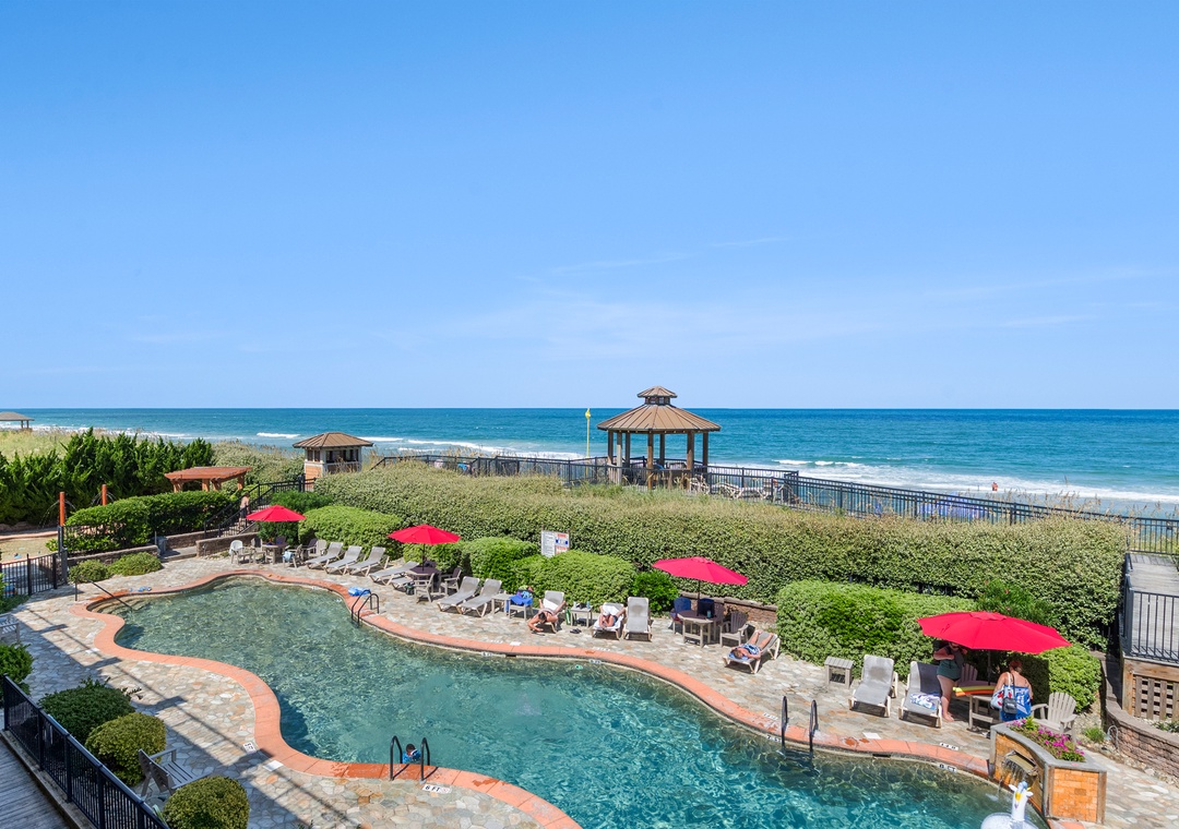 In addition to the outdoor pool, Croatan Surf Club's thoughtfully designed oceanfront oasis boasts lush greenery, a secluded in-ground spa, and a children's area complete with "spray ground" and zero-edge wading pool. Easily transition from the pool to the beach using the convenient boardwalk complimented by a shaded gazebo. The elaborate indoor complex is an equally luxurious masterpiece of cut-stone and tile, consisting of resort amenities that make Sweet Escape the premier choice for both summer and off-season stays. An indoor heated pool (open year-round) is accentuated with a translucent roof, perfect to catch the sun during the day and swim under the stars at night. There's even a fitness center for keeping up with your exercise routine while you're here. Covered parking allows for two cars with additional outdoor overflow parking.