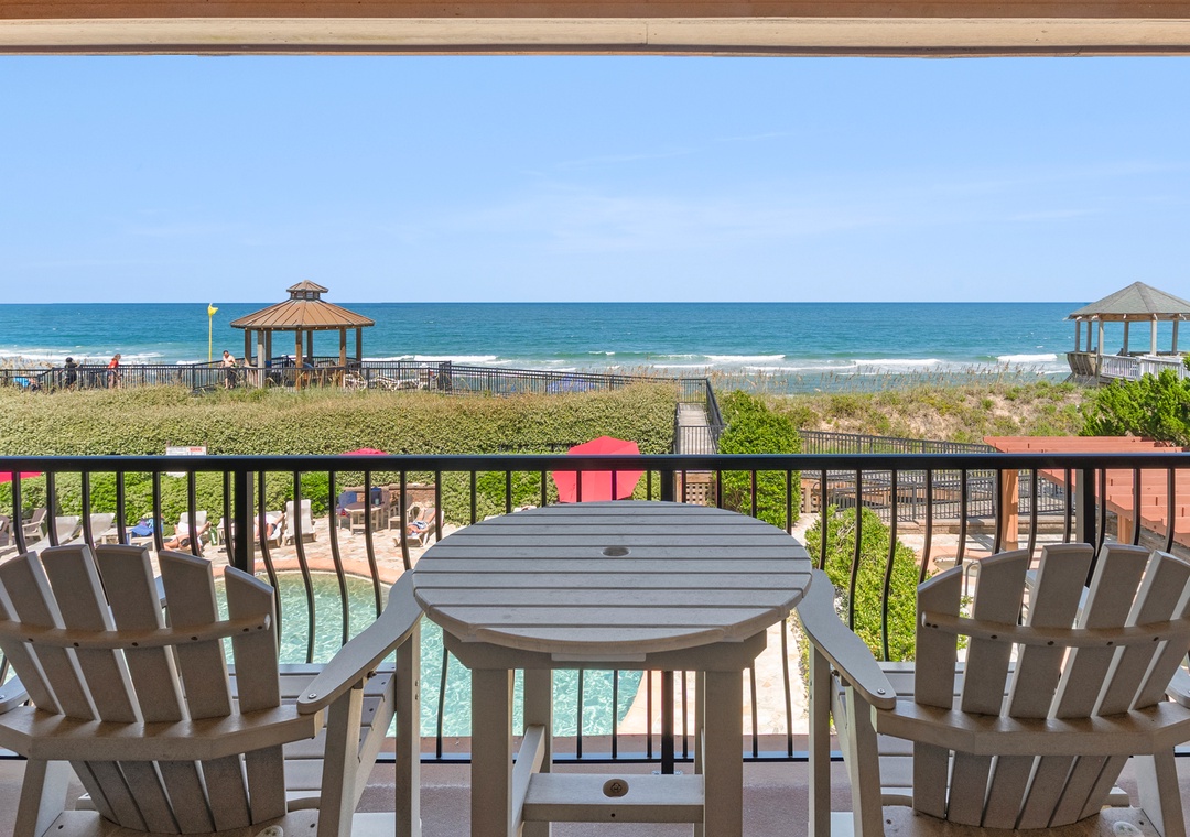 Find your Sweet Escape in this luxurious oceanfront townhome in Kill Devil Hills. Situated on the east side of the Croatan Surf Club, this meticulously maintained retreat offers unobstructed views of the sparkling Atlantic. Along with direct beach access, guests will enjoy a variety of onsite amenities including a stunning 80ft long oceanfront pool. When you arrive, skip the stairs and use the building elevator to send up luggage and groceries. An open-concept great room with cozy electric fireplace leads out to a private terrace overlooking the ocean. It's the perfect place for watching the sunrise while sipping on your morning cup of coffee. Back inside, high end finishes such as hardwood floors, granite countertops and stainless steel appliances create an atmosphere of coastal elegance. At the end of the night, retreat to the spacious primary that leads out to a second private terrace overlooking the pool. It also includes an ensuite bath with jetted tub and custom-tiled walk-in shower. A second king ensuite plus a bunk room on the top-level make Sweet Escape ideal for multiple couples or small families.