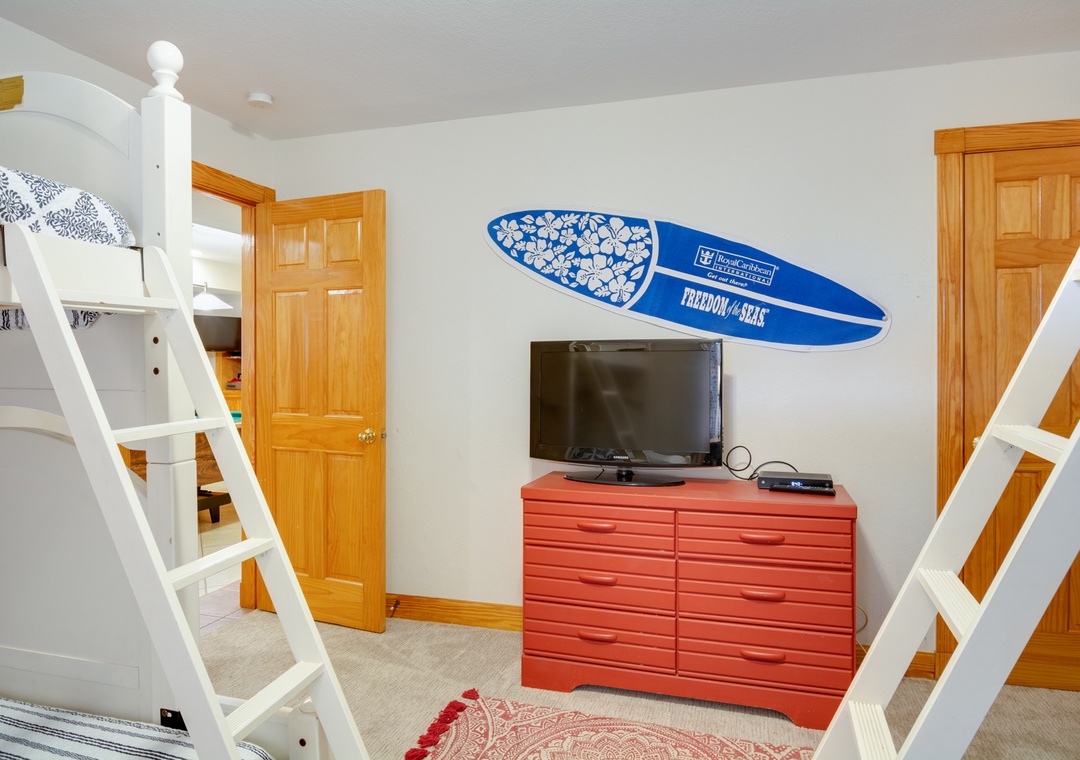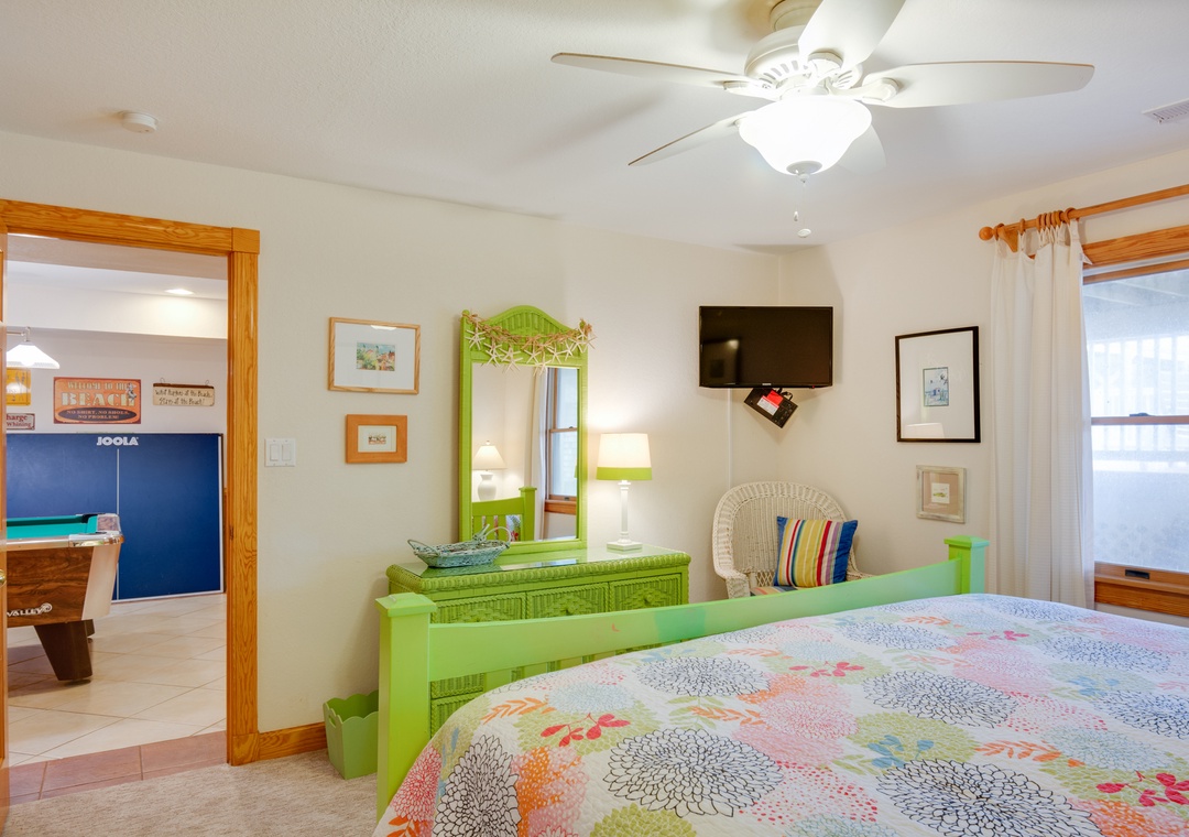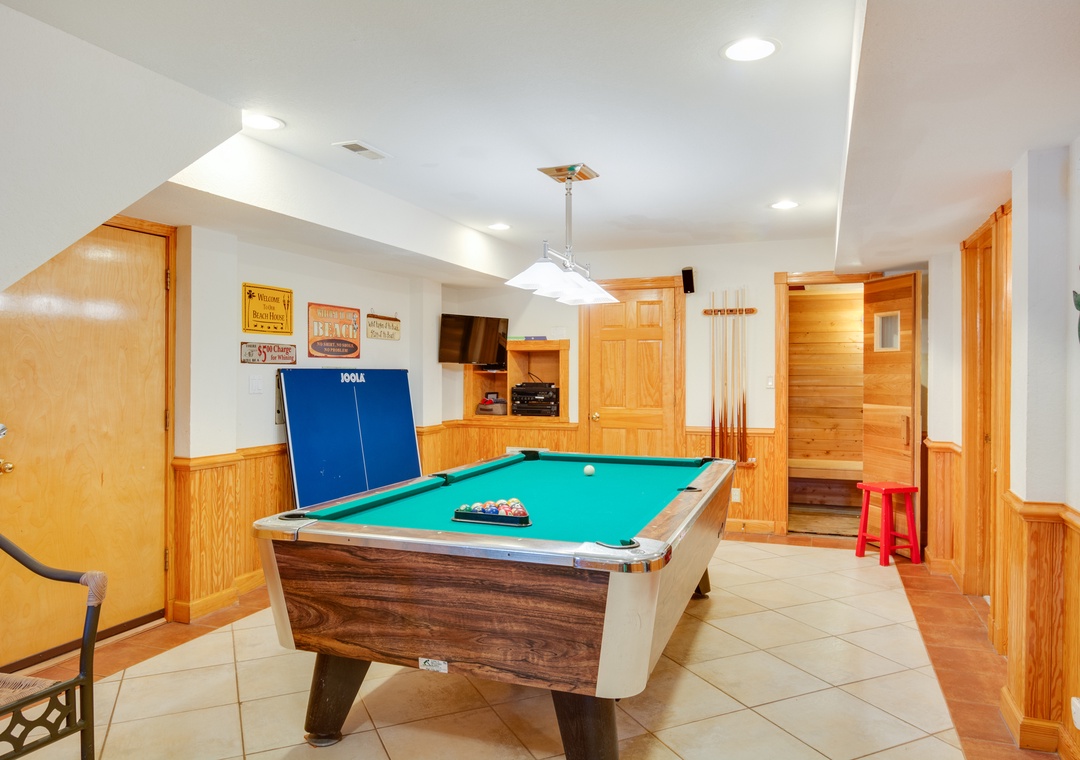 Families love Beach Boys for its multiple getaway areas, including porches and decks everywhere you turn. The mid-level offers another wonderful family space with sofa, chairs, TV, game/card table, books and games. The ground floor entertaining area has a convertible ping pong/pool table, chairs, TV and access to the outdoor pool. The theater room is equipped with a 110" movie screen, overhead projector, theater seating and mini-kitchen. Wifi boosters are located on each floor for reliable connection throughout the entire home.