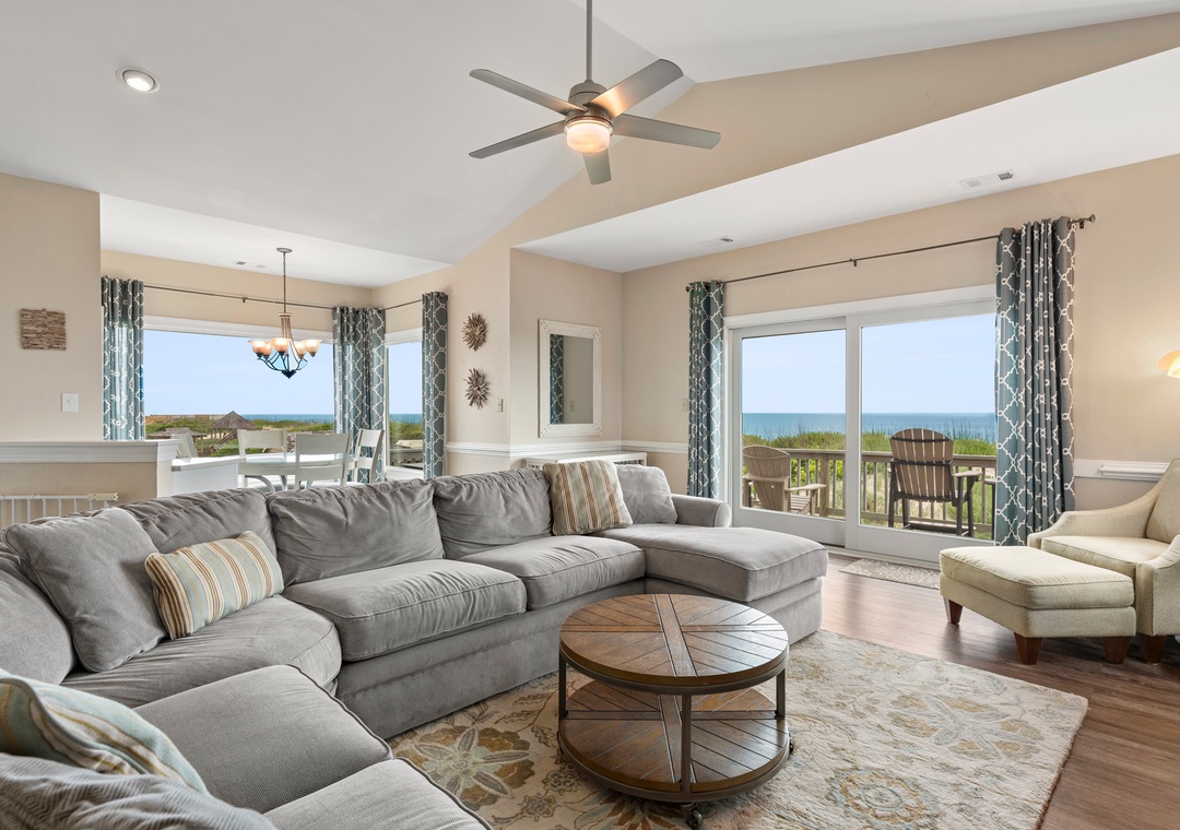 Dune Ridge is a spacious oceanfront duplex that features 6 bedrooms and 4 full baths, making it the perfect getaway for larger families or groups. Enjoy breathtaking views from both the great room and the top-level deck. A private walkway, shared only with the other side of the duplex, takes you directly to the pristine beach, where you can soak up the sun, swim, surf, or search for shells and sea glass.