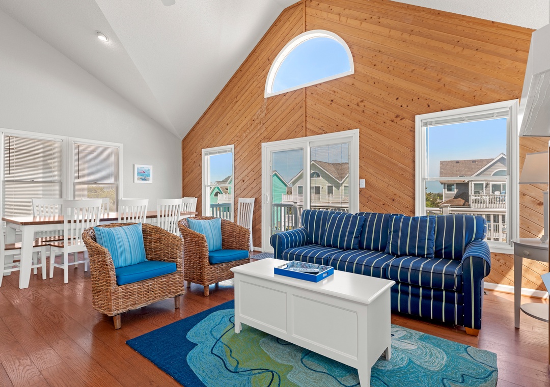 Time Out is a charming four-bedroom vacation home located along Beach Road in Nags Head with convenient beach access just across a 2-lane street.