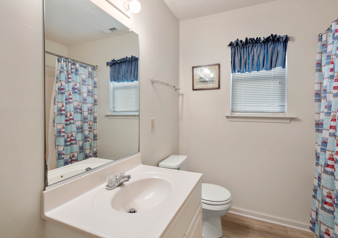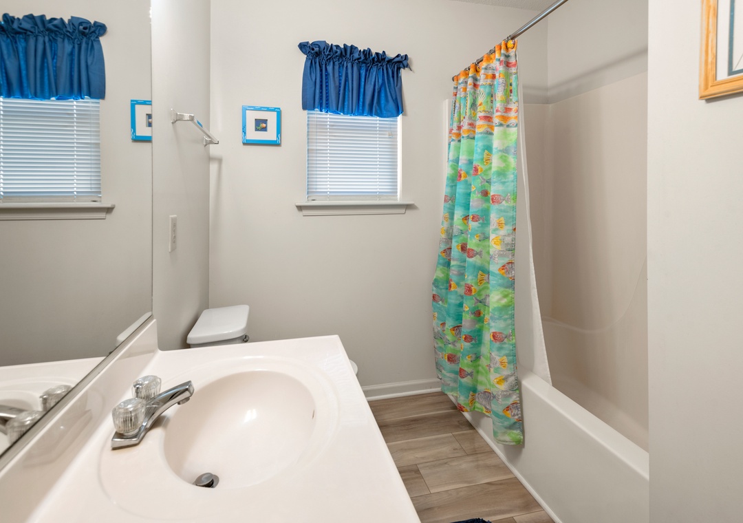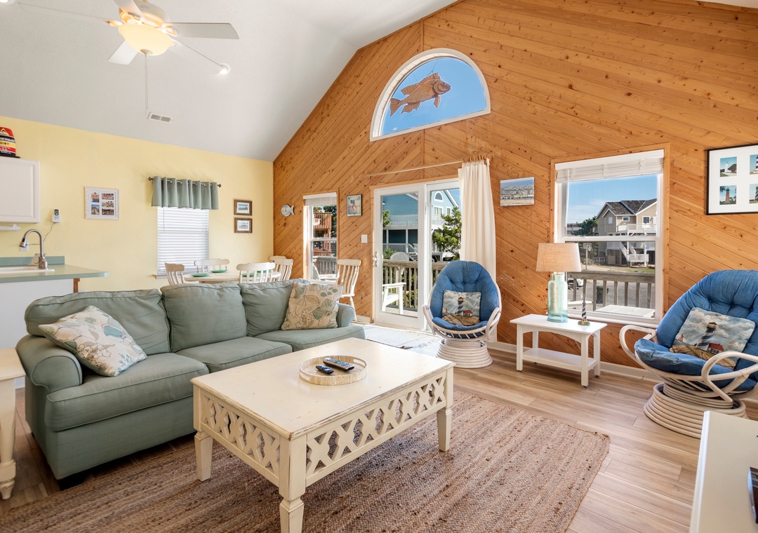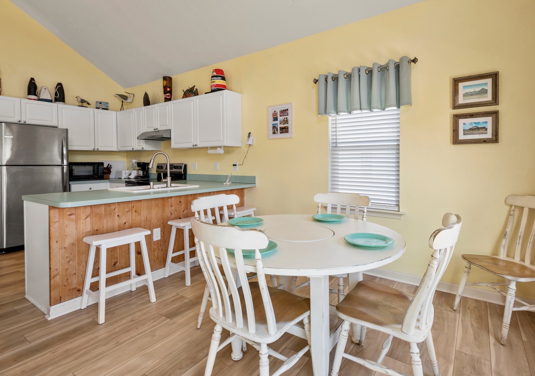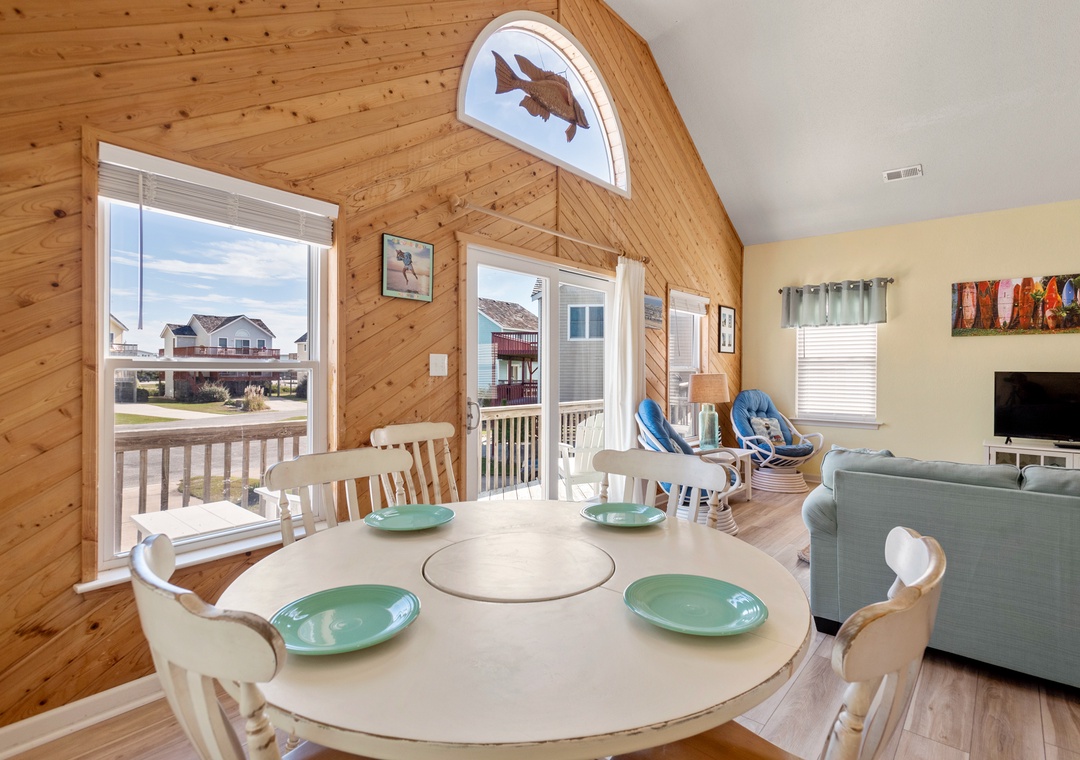 Crabby Patty is a well-maintained and comfortably furnished oceanside home located in Dolphin Run, a part of the Village at Nags Head community. The cheerful color palette and beach-themed decor create a delightful atmosphere for casual family fun. The main living area features LVT flooring throughout, with an open-concept layout that encourages quality time spent together. Ideal for families with children, Crabby Patty is situated in a quiet cul-de-sac and has a basketball hoop in the driveway. After a long day at the beach, rinse off in the outdoor shower before firing up the grill for the catch of the day.