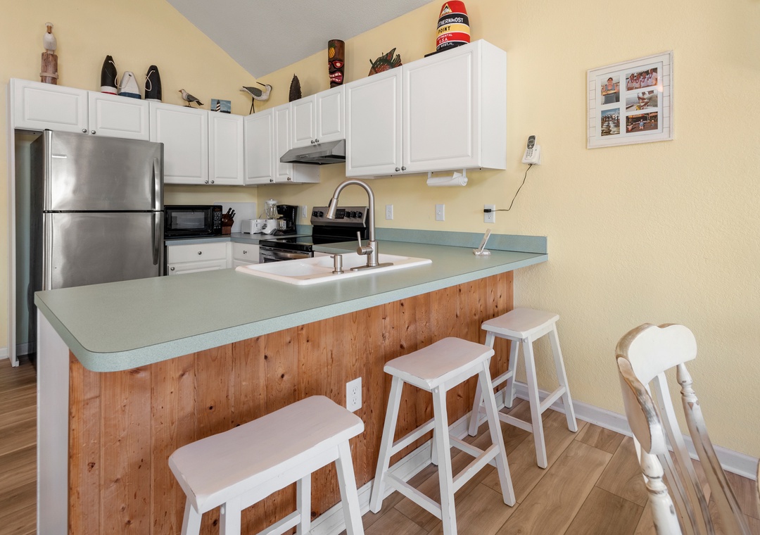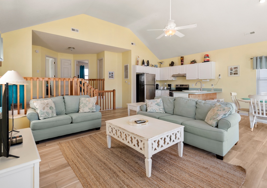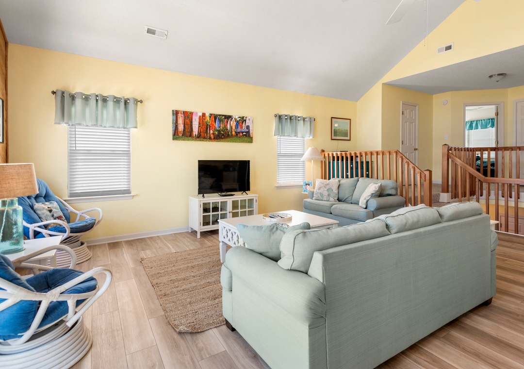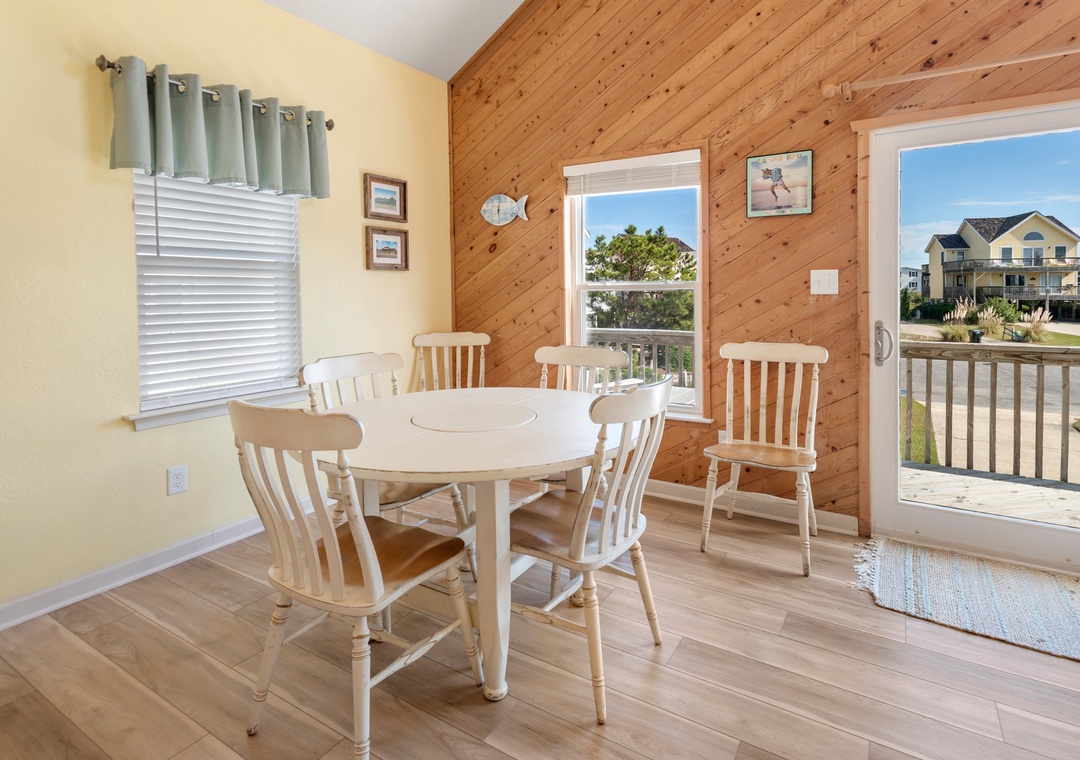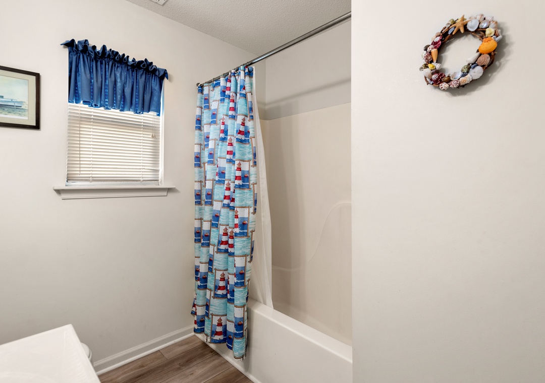 Crabby Patty is a well-maintained and comfortably furnished oceanside home located in Dolphin Run, a part of the Village at Nags Head community. The cheerful color palette and beach-themed decor create a delightful atmosphere for casual family fun. The main living area features LVT flooring throughout, with an open-concept layout that encourages quality time spent together. Ideal for families with children, Crabby Patty is situated in a quiet cul-de-sac and has a basketball hoop in the driveway. After a long day at the beach, rinse off in the outdoor shower before firing up the grill for the catch of the day.
