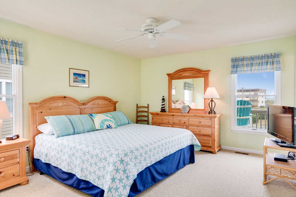 What a great house! We had an awesome week here and so did the other family that vacationed with us. We are regulars here but this year was their first, and I believe they’ve fallen in love with OBX the same way we have. Innisfree is close to all of our favorite shops, like Mudpie, Cotton Gin and The Cottage, and really close to our favorite ice cream joint-Scammell’s. The beach access was close and convenient—the bathrooms and showers there were a game changer. The house itself has a good layout and is spacious. Check the photo above—I’ve never seen so many shades of blue in one photo. I wouldn’t change a thing about our stay. Thanks Village! See you in October!- Reviewed On: 8/5/2018