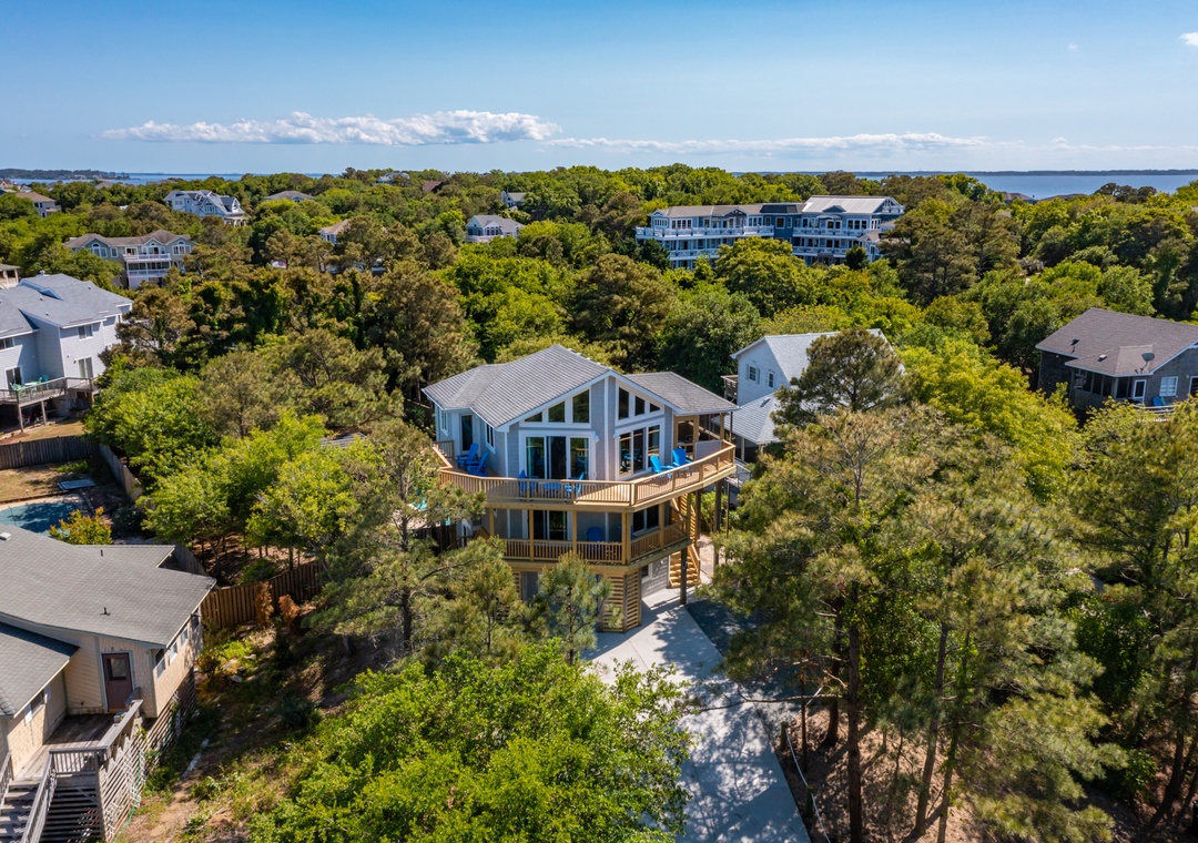 Duck Side of the Moon is a beautiful home in a great location in Duck. Plenty of space for two families to relax in the living rooms, or at the pool. Easy half mile walk to the boardwalk in Duck for shops or restaurants. 3 minute walk to the beach at the end of the street. Would highly recommend staying in this well appointed home. The outdoor lift to get things to the 3rd floor kitchen, etc. was a godsend as well.- Reviewed On: 7/29/2025