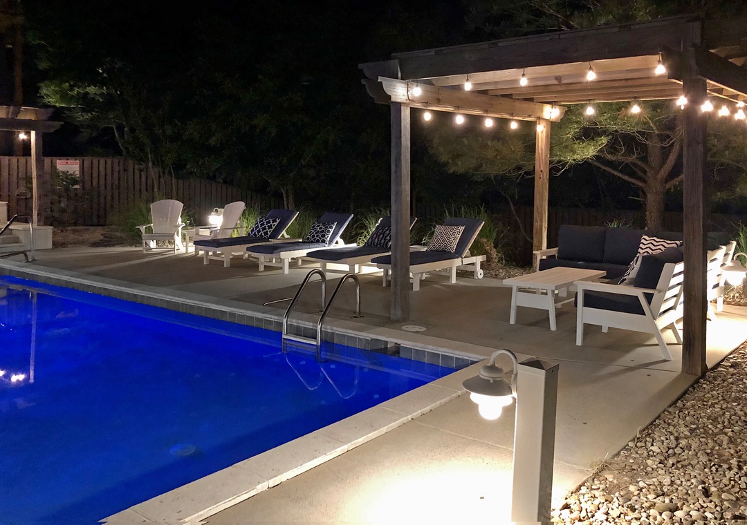 My family and I had a wonderful time at Duck Side of the Moon! The house and location were fantastic. We particularly enjoyed the backyard and pool. It was the perfect oasis. The dining patio, the pergola lounge, and the fire pit, all accenting the saltwater pool, were perfect for relaxing and socializing. And on top of that the additional hung-lighting and the external sound system made it even more so! The house itself is nestled on a quiet treelined street just a few minute’s walk or bike ride from the quaint town of Duck, where you`ll find wonderful shops and restaurants. We particularly recommend The Treehouse Coffee Co. for breakfast and lunch.We highly recommend Duck Side of the Moon!- Reviewed On: 7/1/2022