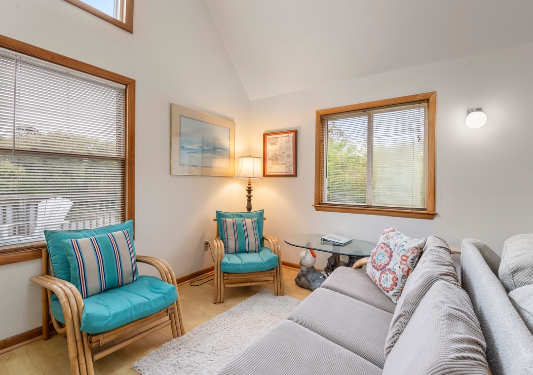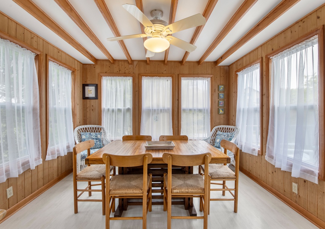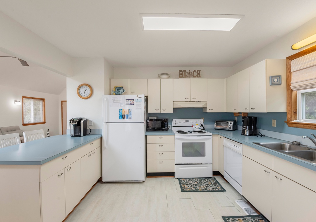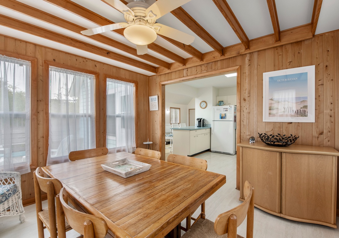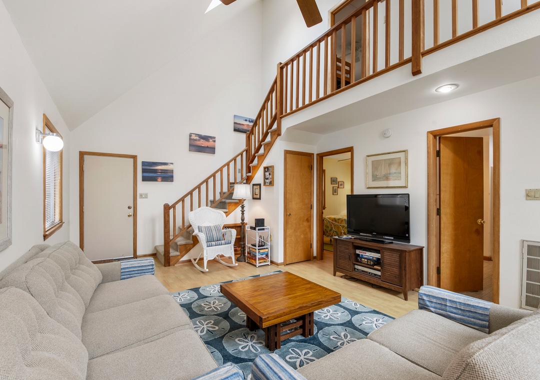 The classic Saltbox design features vaulted ceilings and two stories of windows in the living area for abundant natural light. After a day at the beach, come home and gather in the living area with two seating areas so everyone has a place to relax and mingle. When you're not dining out at one of Duck's fabulous restaurants, the chef in the family can prepare meals in the well-equipped kitchen overlooking the great room. Multiple decks on both the north and south sides of the house provide plenty of room for enjoying the sun, salt air and oceanside breezes.