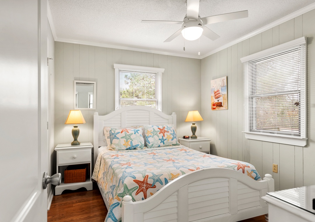 It was easy to check in since the door had keyless entry. The house was very clean and well furnished (though in future a desk might be a good addition somewhere for those who may have to also work during their stay.) The white towels and the linens were spotless and the rooms nicely decorated without being cluttered or obtrusive. The front deck was nice for sitting in the evenings and there's a screened porch with picnic table. It's an easy walk to local shops and food venues -- in particular half a block from Scarborough Faire, a treehouse-like shopping place with boardwalks and a bookstore, great coffee, breakfast, and lunch at Treehouse Coffee, and a wonderful Thai restaurant, Bangkok Thai and Sushi, and more. Across the main road is a lovely long boardwalk trail we used often, and other shops and cafes of various kinds. The beach access at the end of our road was still closed (like many others) due to storm damage but we found another way in the next street up. Great getaway!- Reviewed On: 10/23/2023