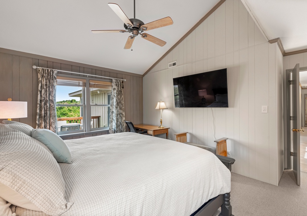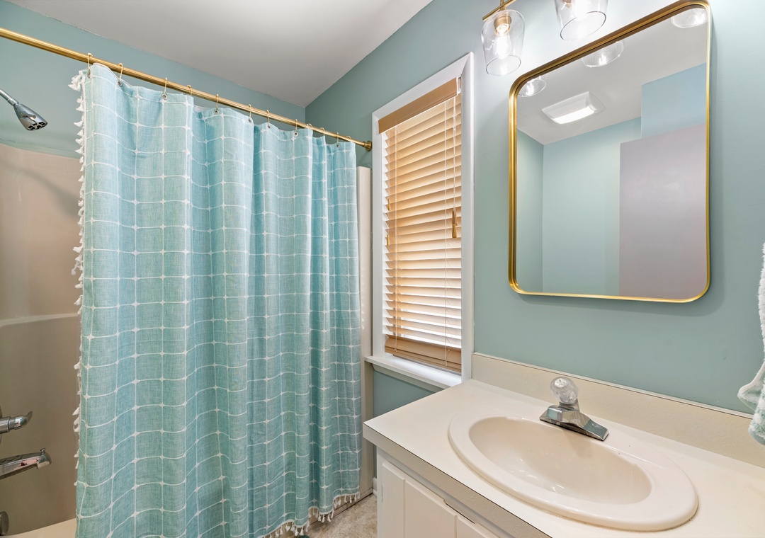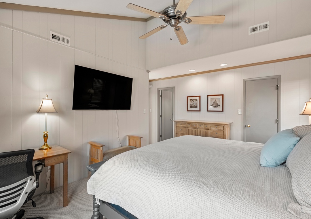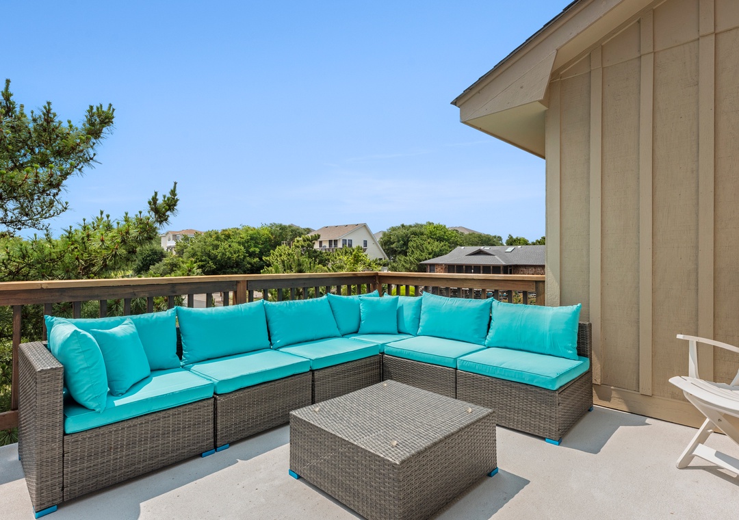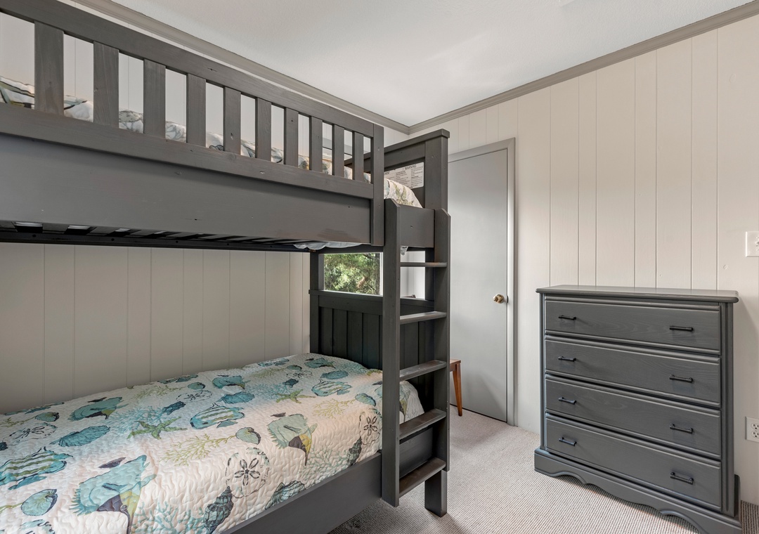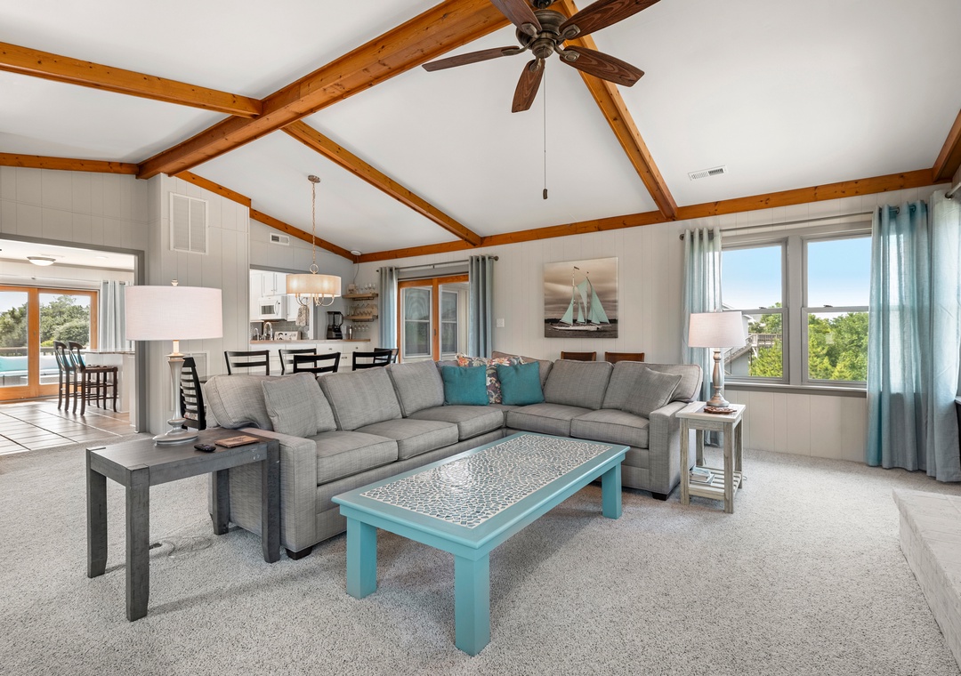 Also on the top level are 4 bedrooms, one being a king bedroom with a private bathroom and three others sharing access to two hall bathrooms. This property offers ample space for a fun-filled family beach getaway!