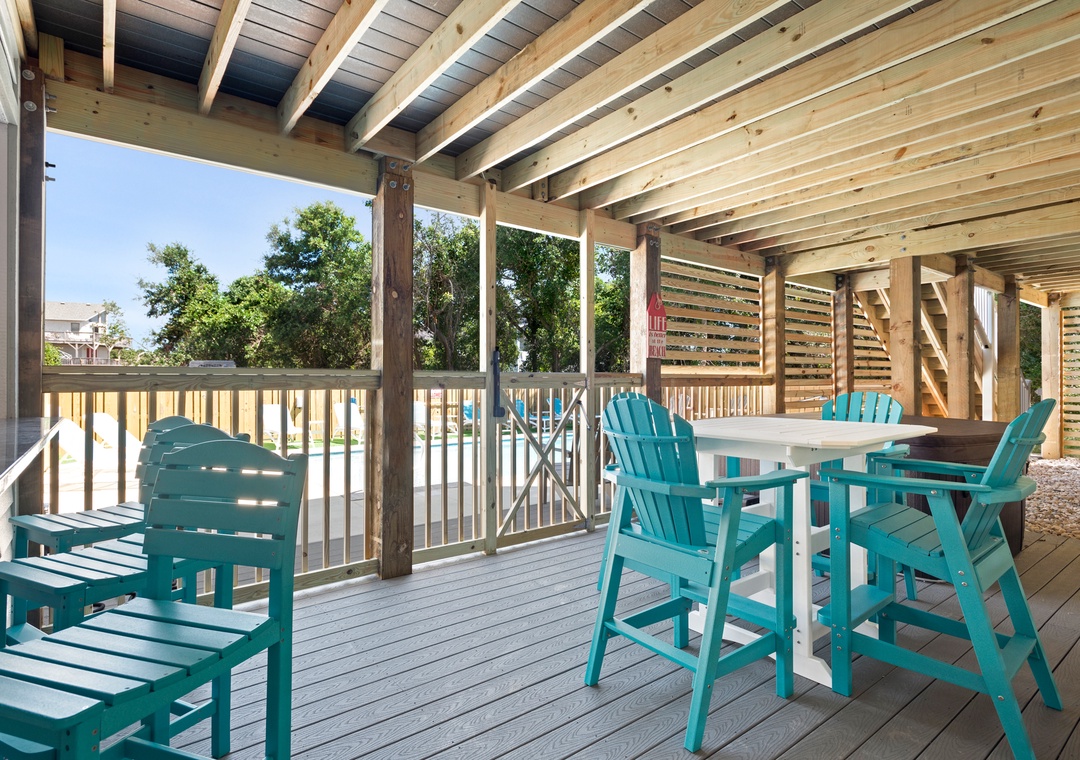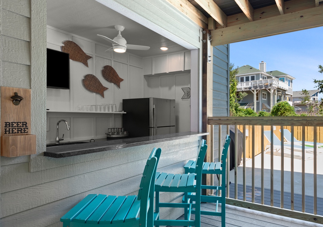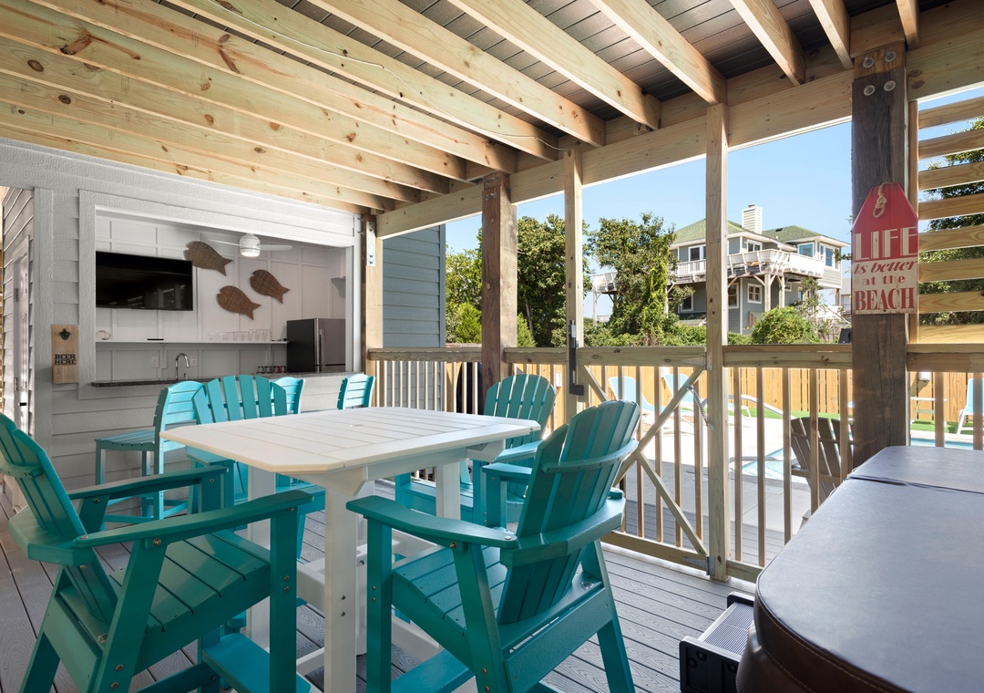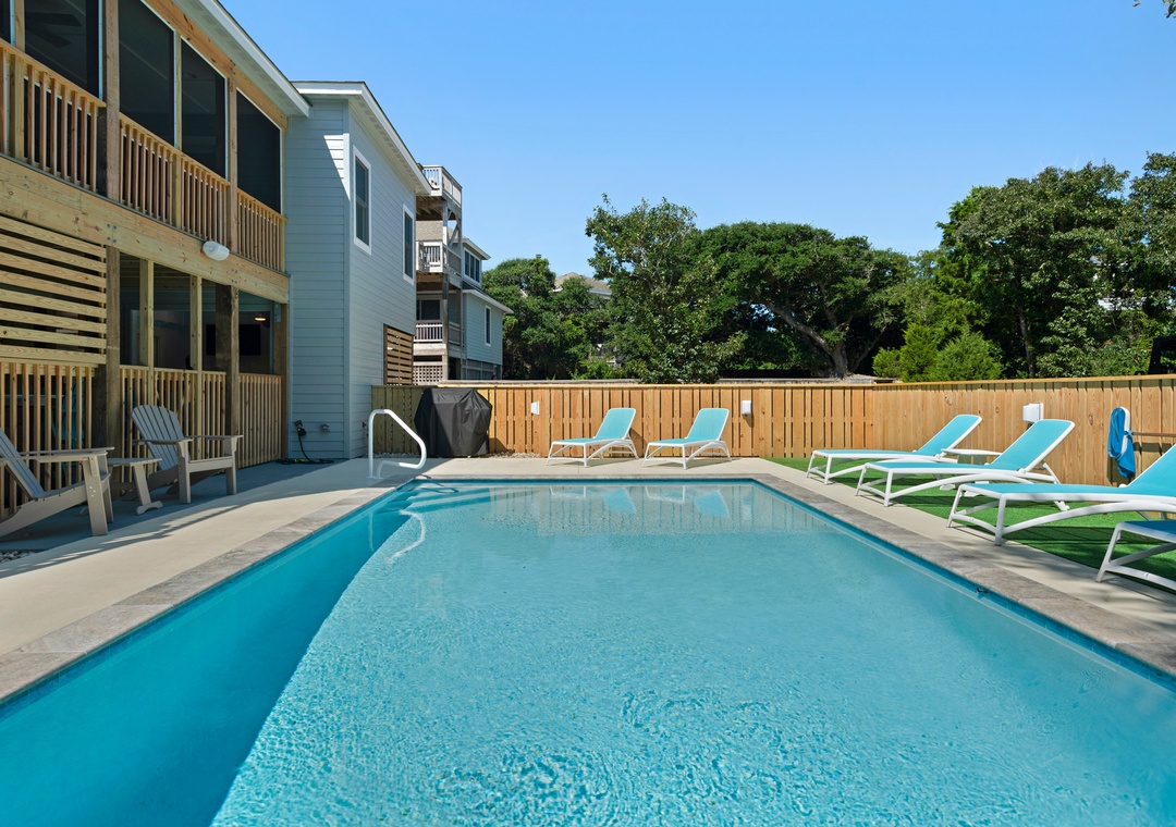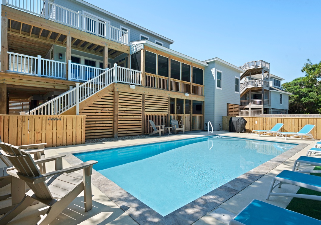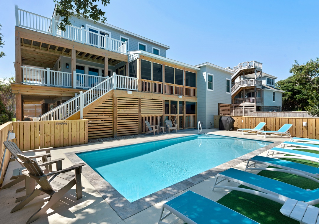 From the moment you arrive at Shorely Blessed, you and your entire family will feel welcome and cozy at this special oceanside vacation retreat. Built in 2021 and meticulously maintained, this stunning home offers easy beach living at its finest. Hang out at the poolside Tiki bar and relax in your very own private heated, saltwater pool, or soak in the hot tub where you can enjoy the Outer Banks star-filled night sky. Enjoy quality family time in the mid-level great room that offers gathering space for watching movies, preparing delicious meals in the well-equipped kitchen and dining space to enjoy those meals and reflect on the day's adventures or retreat to your comfortably appointed bedrooms for quiet reflection. Have some family game time in the rec room where you can play some air hockey or foosball. You'll never want to leave the conveniences and comfort that will have your family cheering for more and you will know you have been Shorely Blessed!