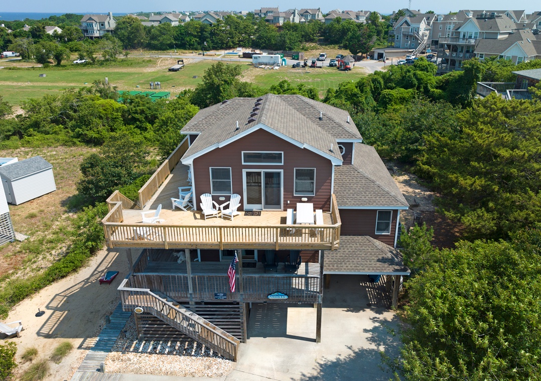 Salty Duck is a delightful oceanside home with updates throughout, Panoramic Sound Views, a private pool and a location that can't be beat! Both the beach and all the splendors of downtown Duck are within walking distance. The large lot is situated high in the dunes for breathtaking sunsets and a view of the sound from the top level.
