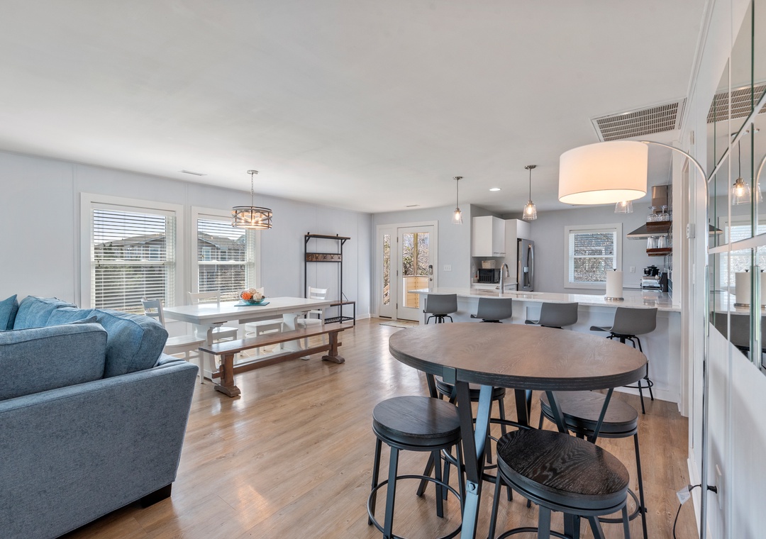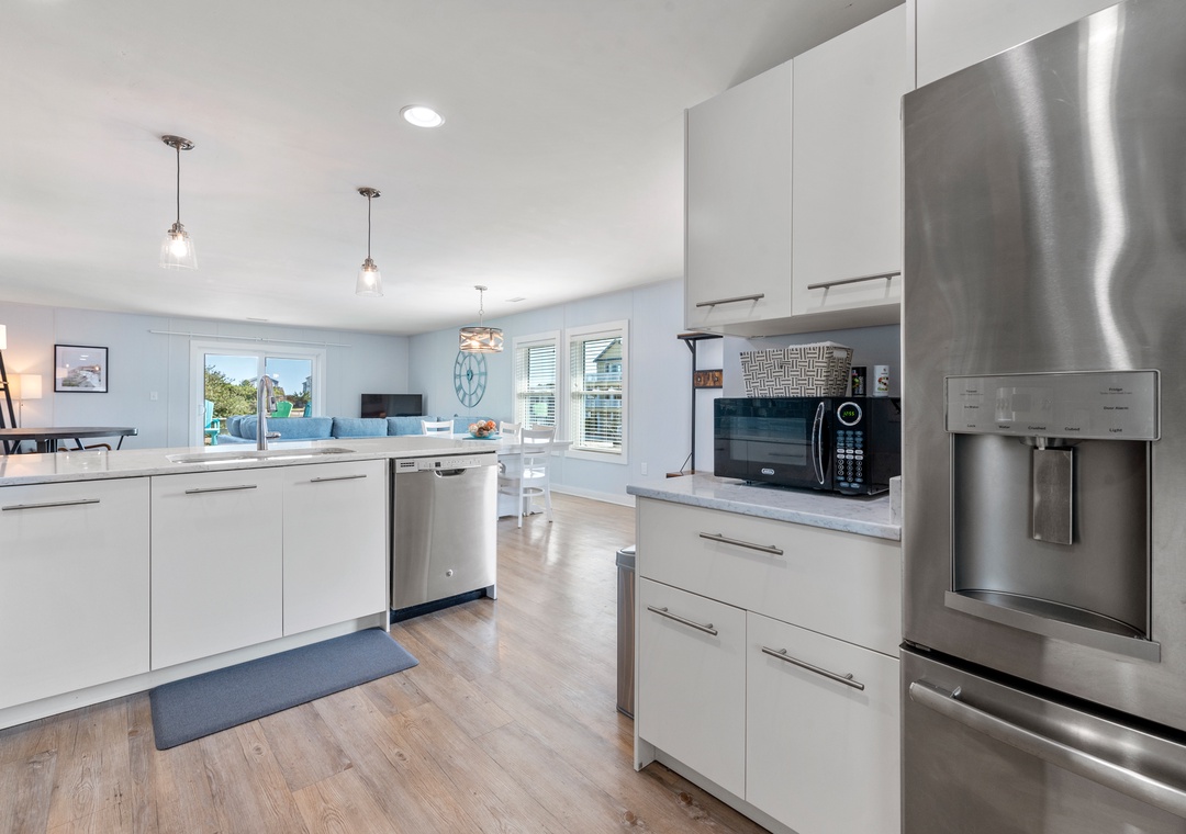 This immaculate home boasts contemporary finishes and minimalist design choices to create a fresh and relaxing atmosphere. Stylish yet practical LVP flooring runs throughout the common areas, tying the entire space together for a cohesive look. When you're not dining out at one of Duck's fabulous restaurants, prepare meals at home in the updated kitchen that overlooks the great room and features granite countertops, stainless steel appliances and bar seating for four. A spacious sun deck off the living area provides plenty of room for enjoying the sun, salt air and oceanside breezes. After a day at the beach or exploring Duck, come home and unwind with a relaxing soak in the 6-person hot tub.