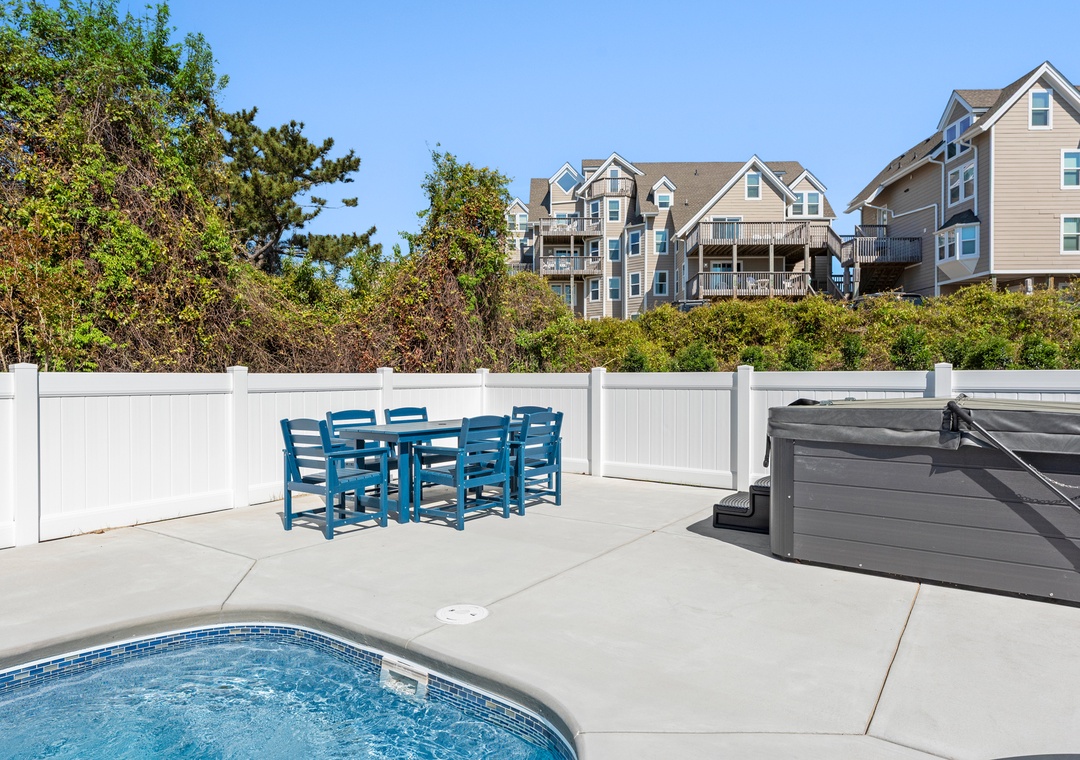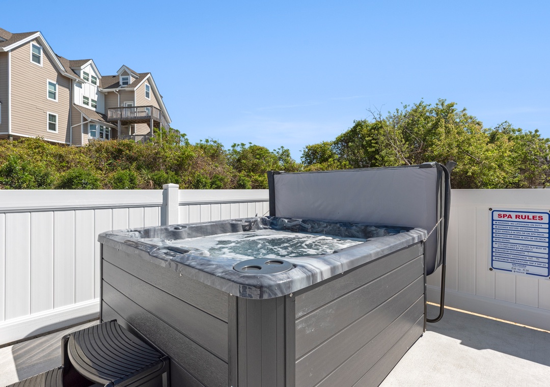 The new pool and hot tub are now installed and ready! Please see the updated photos of the beautiful new hot tub and sparkling clean pool! Find your happy place at A Change in Attitude, a well-maintained oceanside home near the heart of Duck with easy access to the beach. This fabulous top of the dune home has amazing ocean and sound views from the high rooftop deck. This home is just a few minutes stroll down the street to the private community beach access with a walkway and dune crossover.