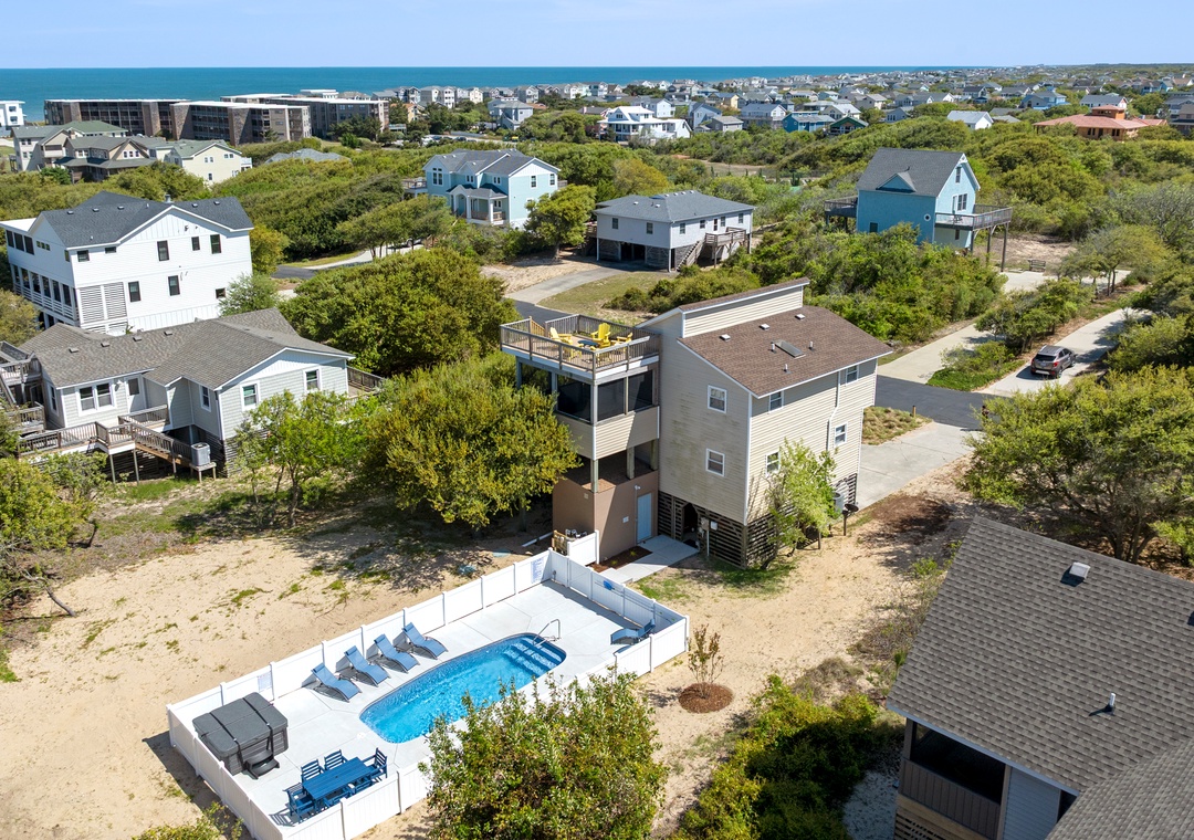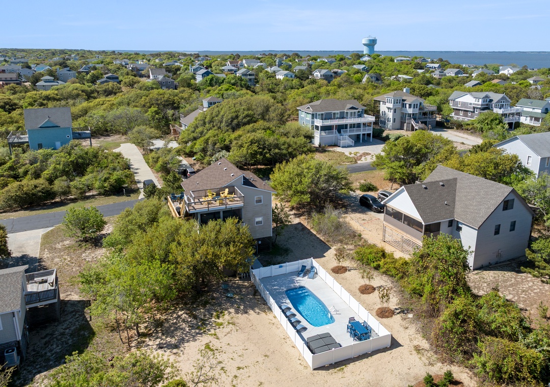 First trip to OBX to attend a wedding. The house was very clean and plenty of room for two adults and six adult “kids”. Nicely decorated, great views of the bay and ocean from rooftop deck (my fav part of the house). There is also a nice screened in room with large picnic table as well as two other outdoor deck spaces to sit. The pool and hot tub area are beautiful. A short walk puts you on a private access beach (for the residents of the road). Very quiet street with lots of trees creating privacy. As stated, you get a starter set of paper supplies. There’s nothing else, which I knew. I brought napkins, liquid hand soap, foil, plastic wrap, spray cleaner, coffee filters, salt and pepper, beach towels…. the kitchen is well stocked with pans, glasses, serving trays and bowls. Overall, it’s a nice house, in a nice location and the property manager is easy to communicate with.- Reviewed On: 6/1/2025