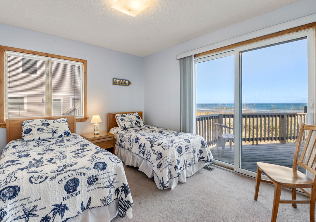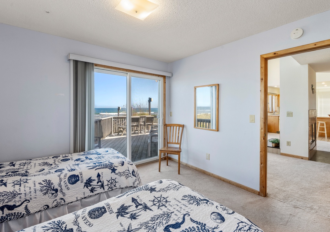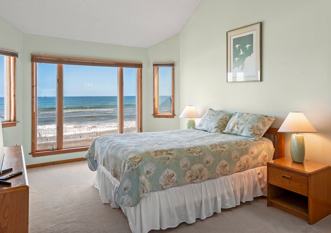 Two of the three bedrooms on the mid-level feature deck access, perfect for falling asleep to the sound of crashing waves. The fourth bedroom is a primary suite located by itself on the top level for plenty of privacy. Floor-to-ceiling windows maximize the magnificent views from this spacious retreat, where you can lay in bed while watching the sunrise over the ocean. It includes an ensuite bath with oversized jetted tub, separate shower and dual vanities. Also on the top floor you'll find a loft space with pull-out sofa, which can serve as an extension of the primary suite or used as an alternative living/sleeping area.