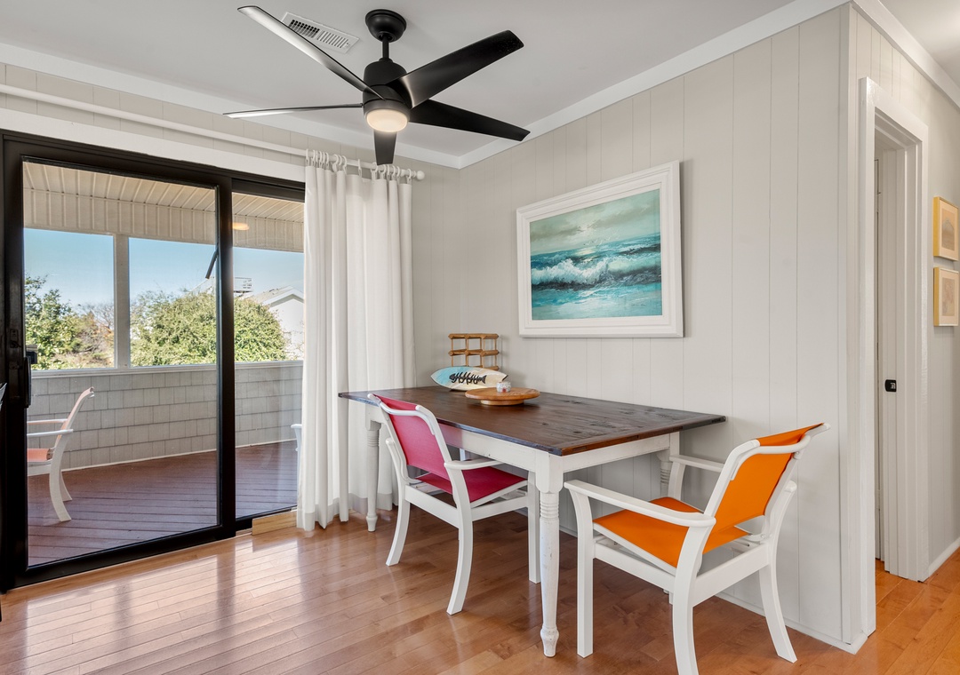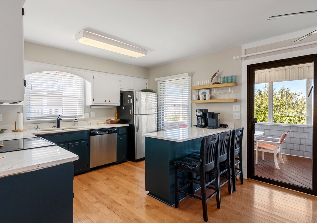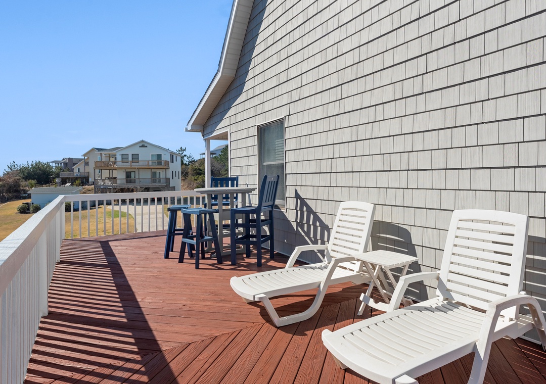 For your next Outer Banks vacation, slow down and recharge with family and friends at Slumbering Duck. This lovingly maintained three-bedroom home is situated just four lots back from the sparkling Atlantic in the oceanside neighborhood of Carolina Dunes. Getting to the beach will be quick and easy using the community access just a two-minute walk from the house. Recent updates include new kitchen countertops, new vanities and bathroom fixtures, and fresh interior paint. LVP flooring will be installed throughout, just in time for the 2025 season. Upstairs, you'll find a ships watch deck where you can enjoy views of both the ocean and the sound. Dogs are welcome at Slumbering Duck, so you won't have to leave your fur babies behind. They'll love running around in the expansive front yard with lush, grassy lawn.
