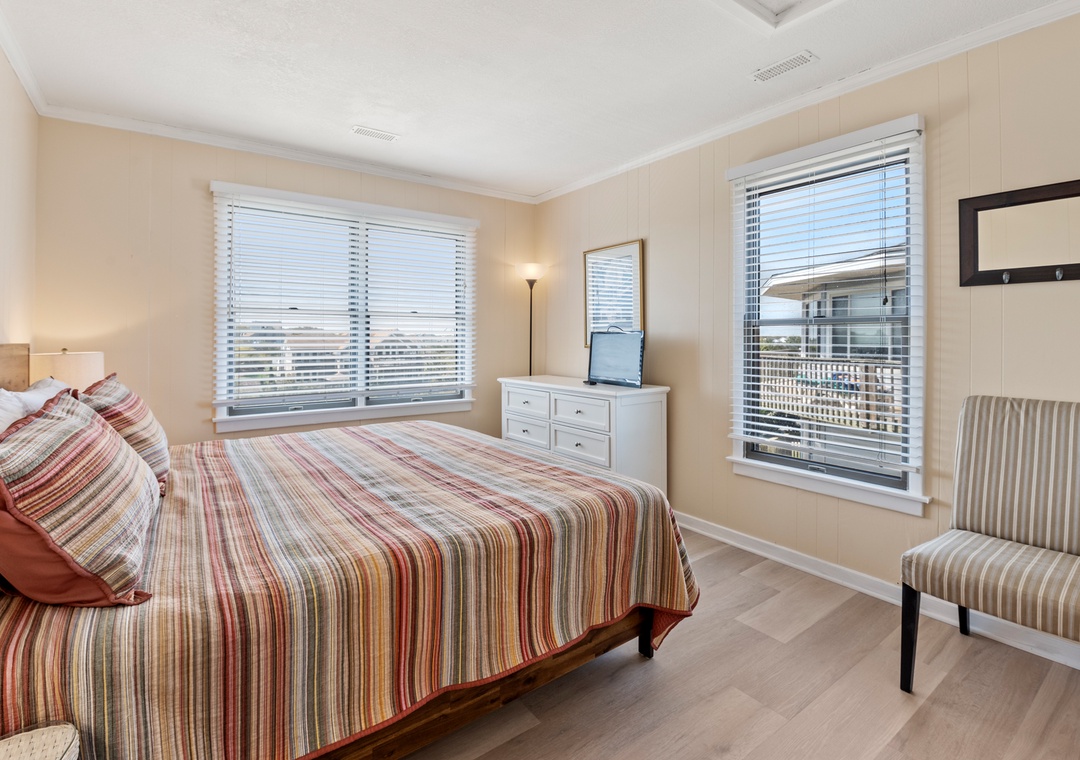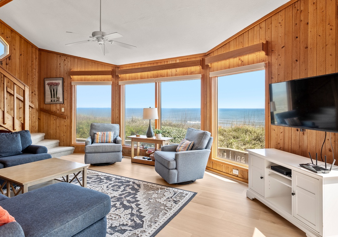 This house exceeded my expectations. The views are incredible. You are looking directly at the ocean from almost every room. The covered outdoor porches and comfortable outdoor furniture provided a tranquil environment to relax and enjoy the morning coffee. The kitchen was well equipped to cook anything, it even had crab hammers and crackers!! Location was great. We rode Ebikes to get ice cream and go to the playground. My 2 year old grandson LOVED his room. It was conveniently next to a bathroom with a tub and connected to his parents room. There is also a great little area under the house that we hung a hammock. It has a few tables and outdoor shower. Keeps sand out of the house. We are definitely returning next year. The house was sparkling clean on arrival and village realty responded with in minutes to my text messages.- Reviewed On: 6/1/2023