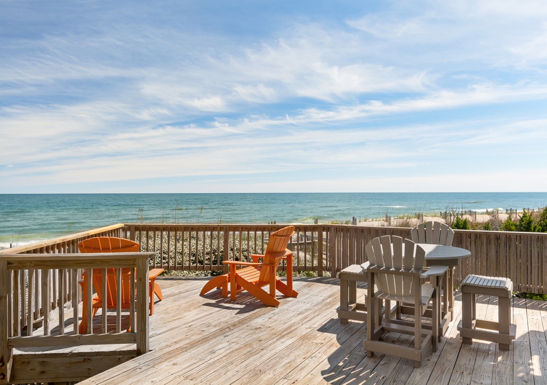 We really enjoyed our stay at Pelican Post. The views of the ocean are excellent with exceptionally large, clear windows. The Master Bedroom is particularly great with the adjoining deck a great place to view the sunrise. The kitchen is nicely updated, the living space is comfy, and the high quality deck furniture made for the perfect outdoor space. The only minor complaint is the bathrooms can be a bit small when needing to share counterspace. There is easy access over the dune and the location is nicely positioned for a bike ride into Duck or a short ride up to Corolla.- Reviewed On: 8/19/2025
