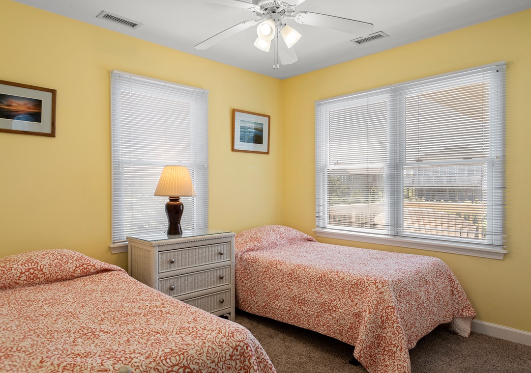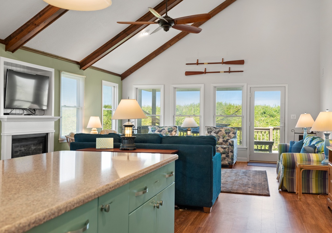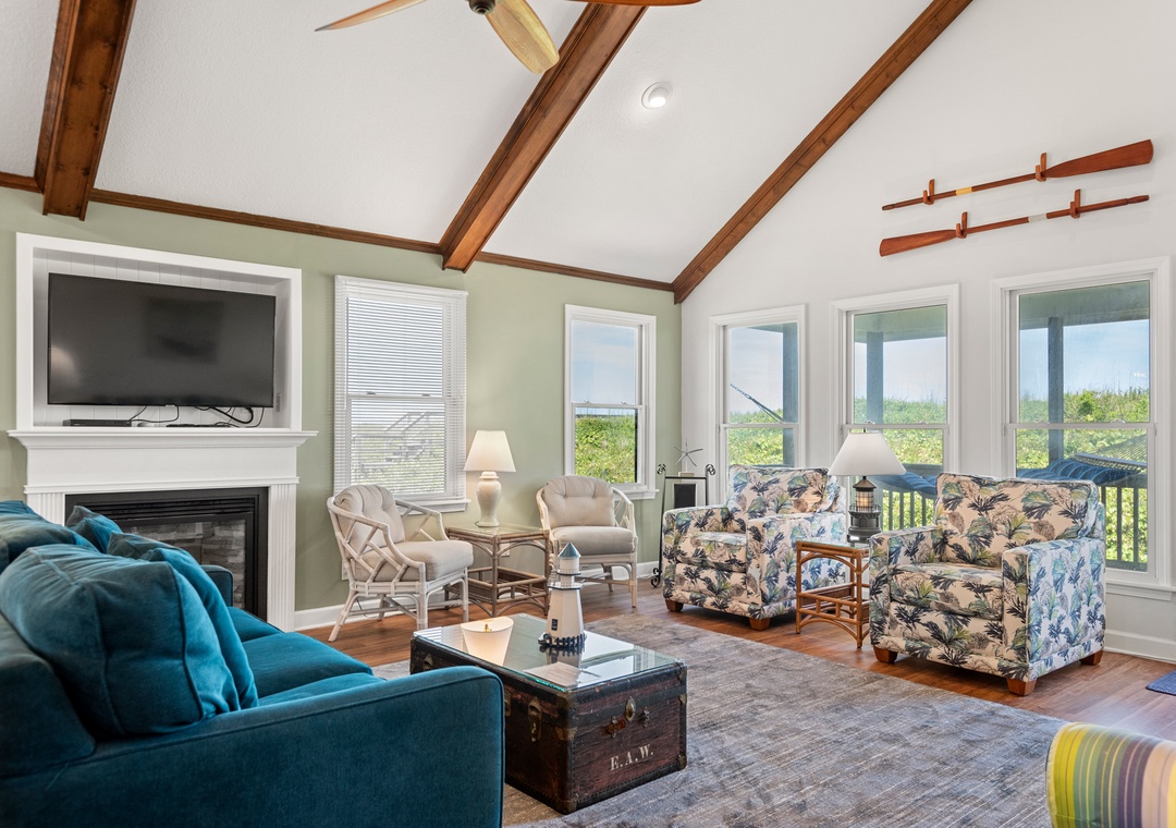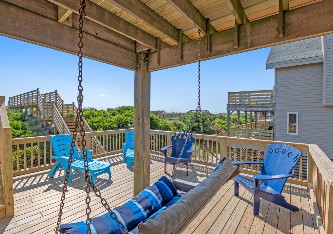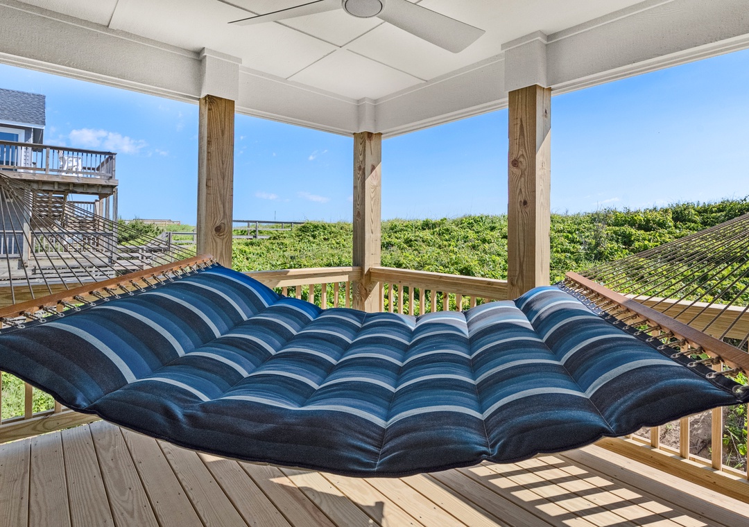 Serenity is the perfect place to be calm and peaceful. This oceanfront home lets you hear those relaxing ocean waves and watch amazing sunrises over the ocean. The quiet, tree-lined neighborhood offers a great place to walk, ride a bike or run. Grab your coffee and a good book and relax on the spacious decks. The beach is only a few feet away where you can catch some sun, gather some shells or maybe find some sea glass.