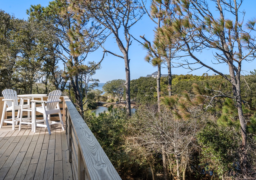 We had a magical long weekend at this home! It is quietly nestled under a canopy of live oak trees which make you feel like you're in a magical treehouse when relaxing on the many outdoor decks of the home. There is a stunning view of a creek and the sound from the porch which we loved watching sunsets from. Although the kitchen didn't have oils, spices, etc... it was equipped with everything else we needed to enjoy our meals! The location is fantastic - we walked across the road and down a wooded path to the beach in 4 minutes. The king bed is super comfortable and the bathroom jacuzzi tub and huge walk in shower was a plus! Living room was perfect for relaxing and playing games. We had a magical time and would return in a heartbeat! You are minutes from a grocery store if needed as well as plenty of wonderful restaurants. Highly recommend!- Reviewed On: 5/27/2024