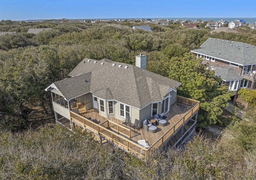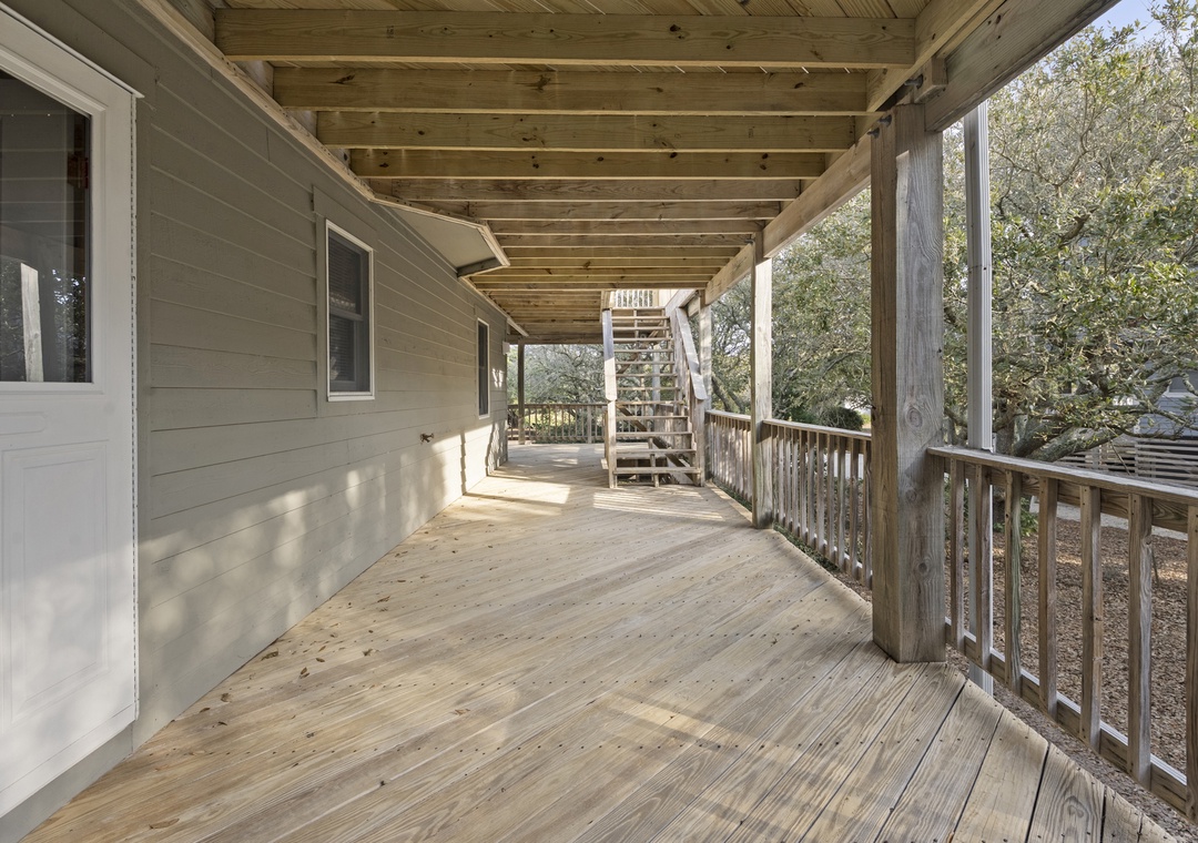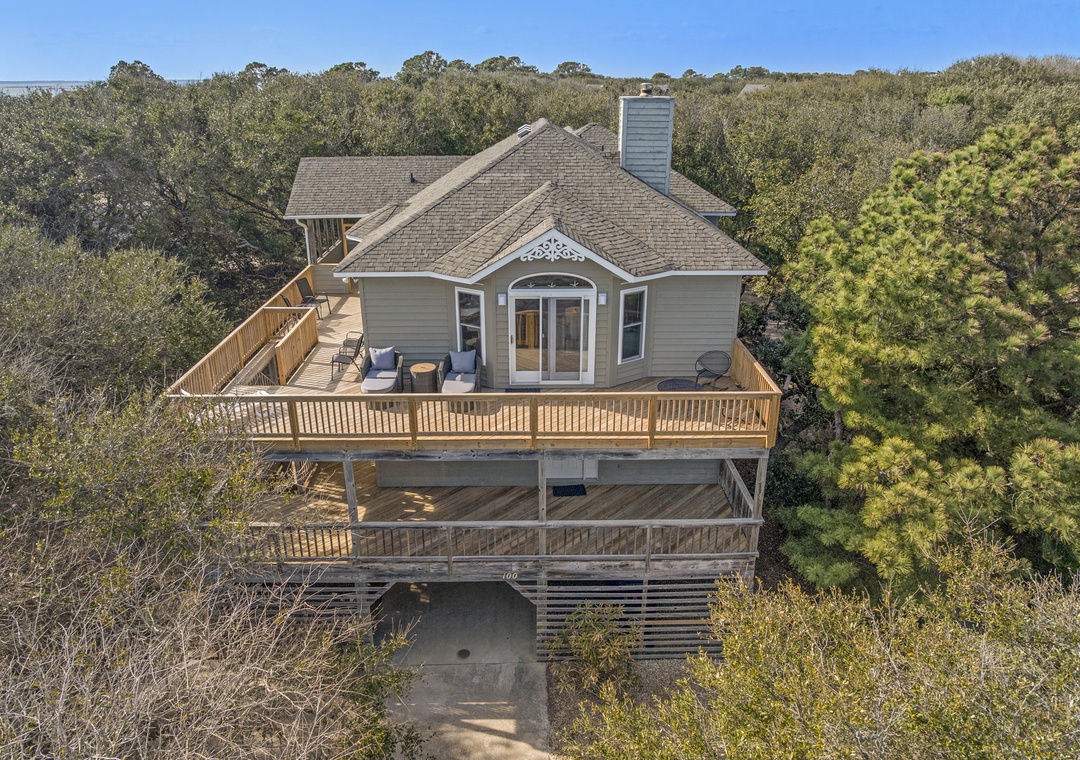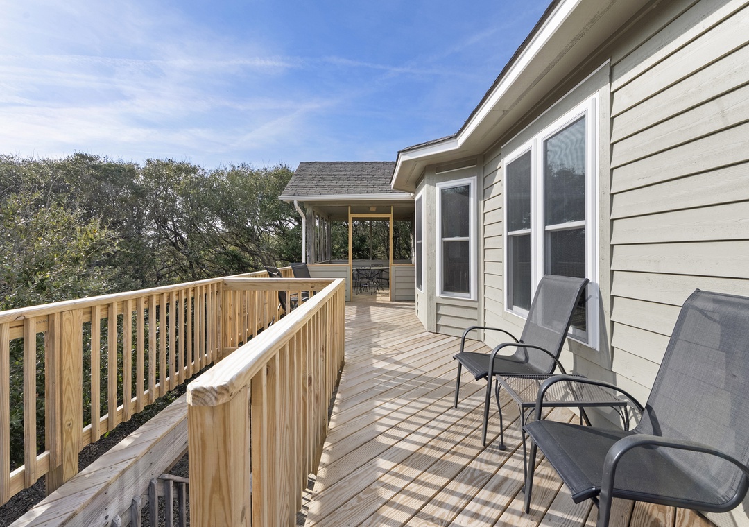 On the top level, cook up seaside feasts in a fully equipped kitchen, then gather in the great room with cozy seating and a game table for laughter-filled nights. The primary king ensuite boasts a whirlpool tub, perfect for soaking after a day at the beach. Step outside to the wraparound deck and savor ocean breezes from the covered porch.