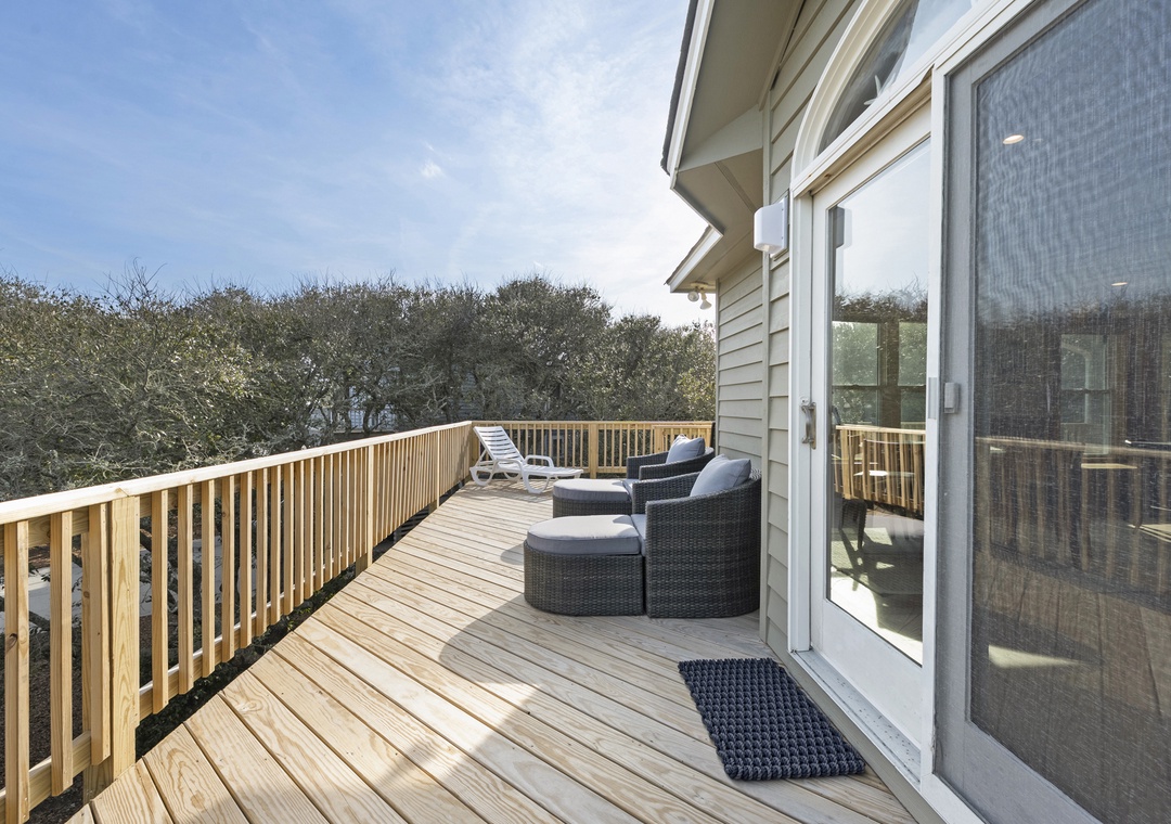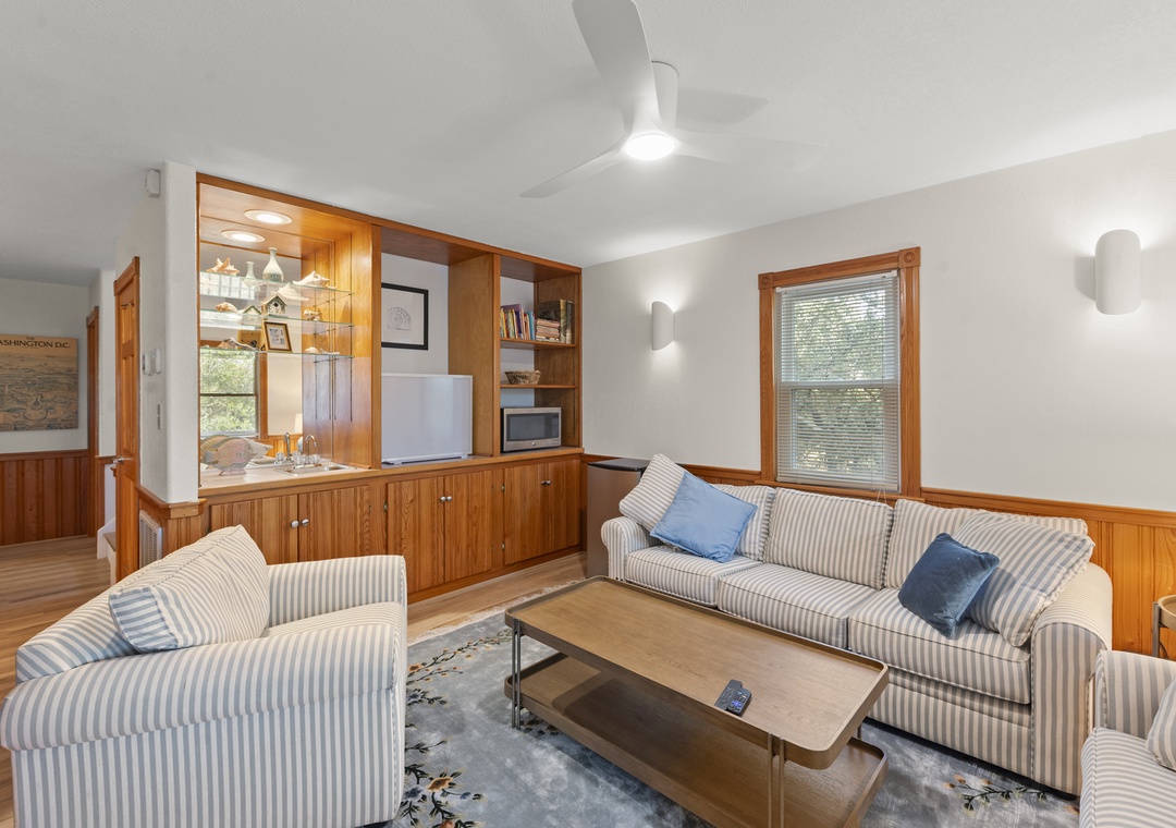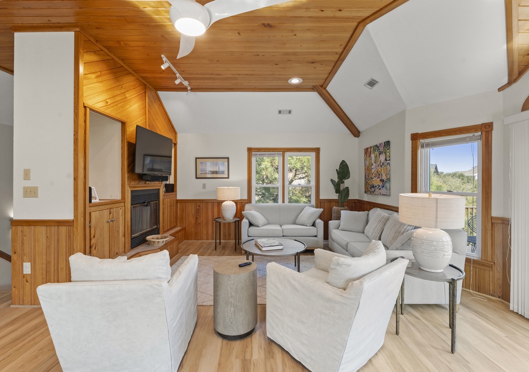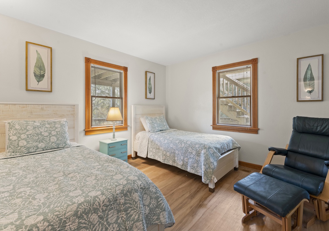 Inside, you’ll find luxury vinyl plank flooring throughout, stylish furnishings, and plenty of room for everyone to unwind. The middle level offers a queen ensuite bedroom, two bedrooms with twin beds, and a family room complete with a wet bar. Another expansive deck invites you to sip your morning coffee while listening to the waves.