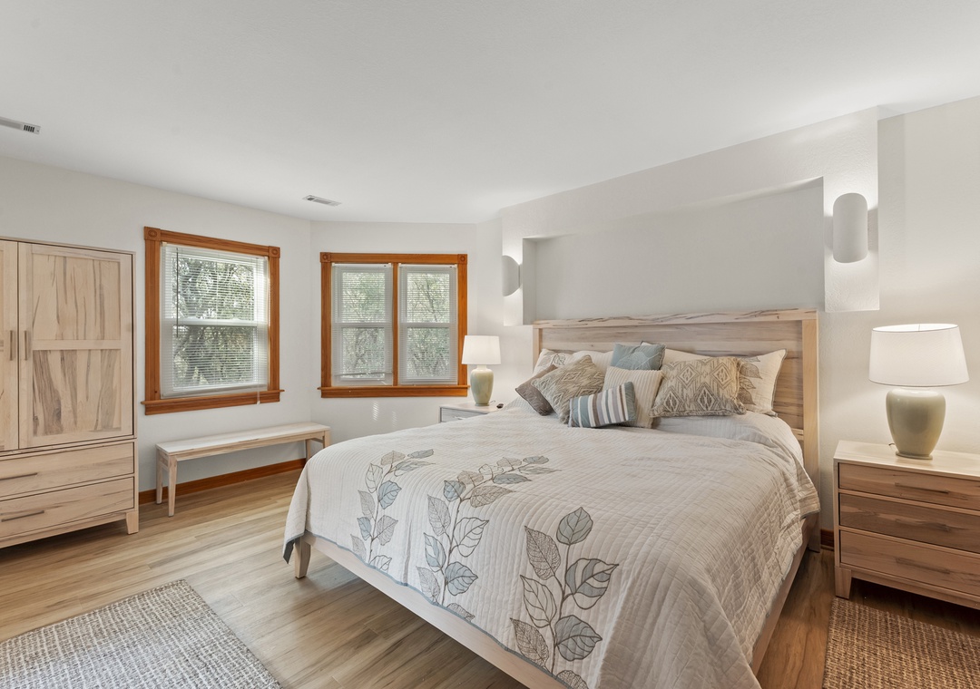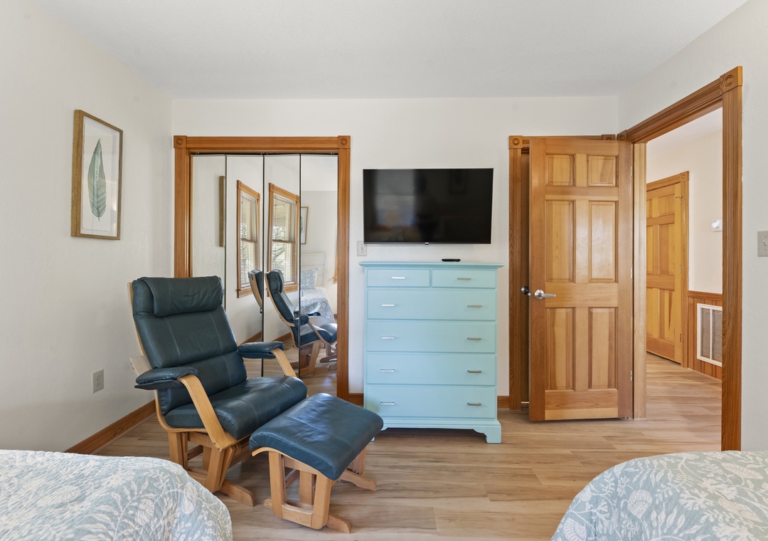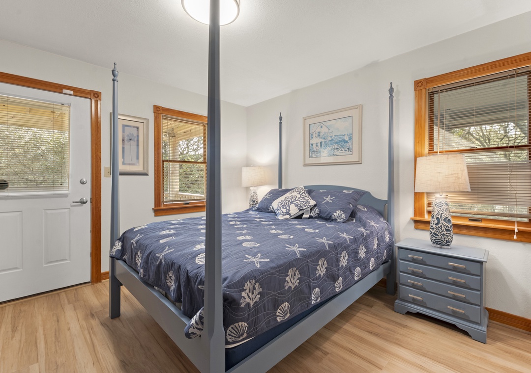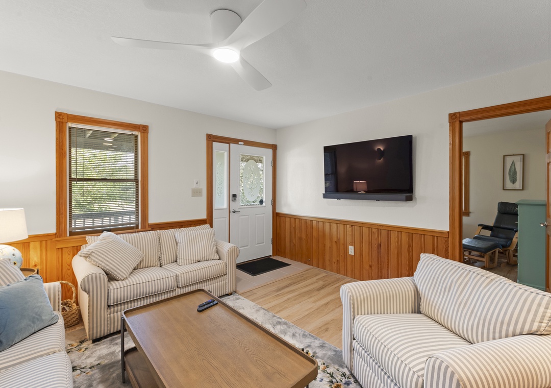 Inside, you’ll find luxury vinyl plank flooring throughout, stylish furnishings, and plenty of room for everyone to unwind. The middle level offers a queen ensuite bedroom, two bedrooms with twin beds, and a family room complete with a wet bar. Another expansive deck invites you to sip your morning coffee while listening to the waves.