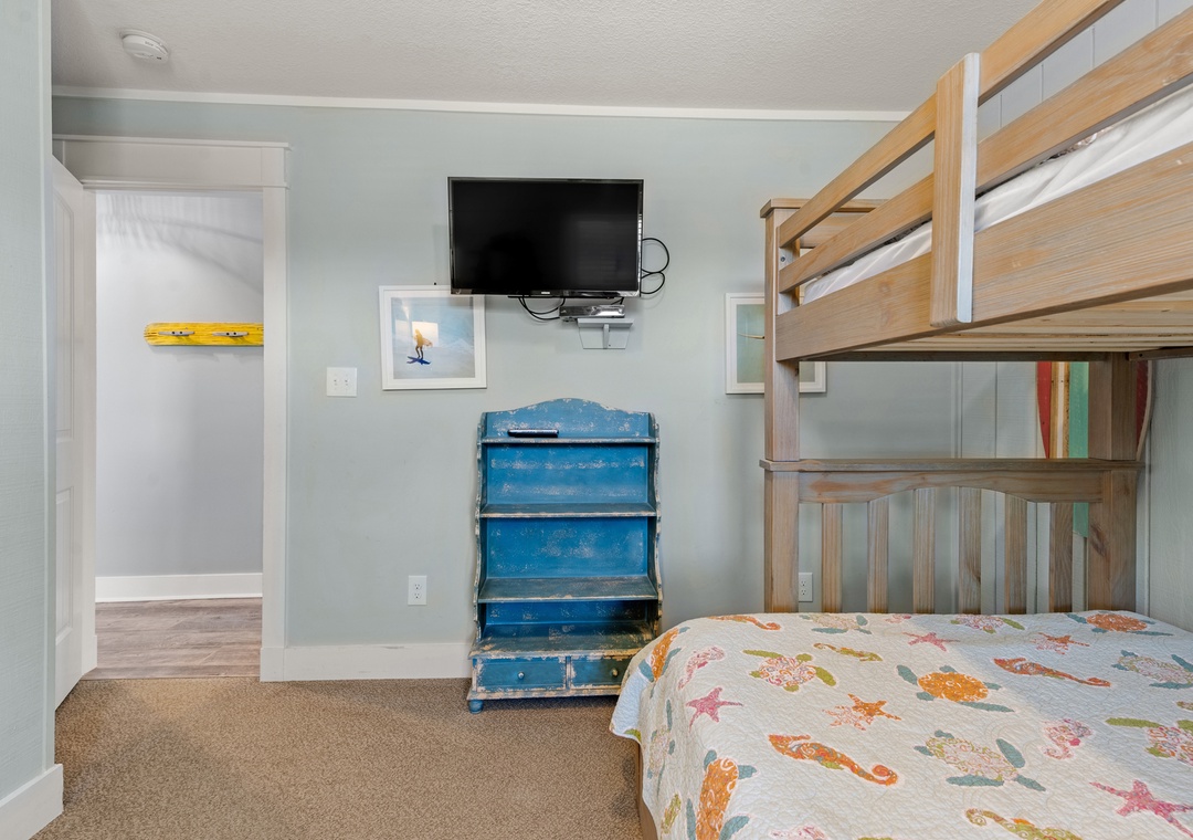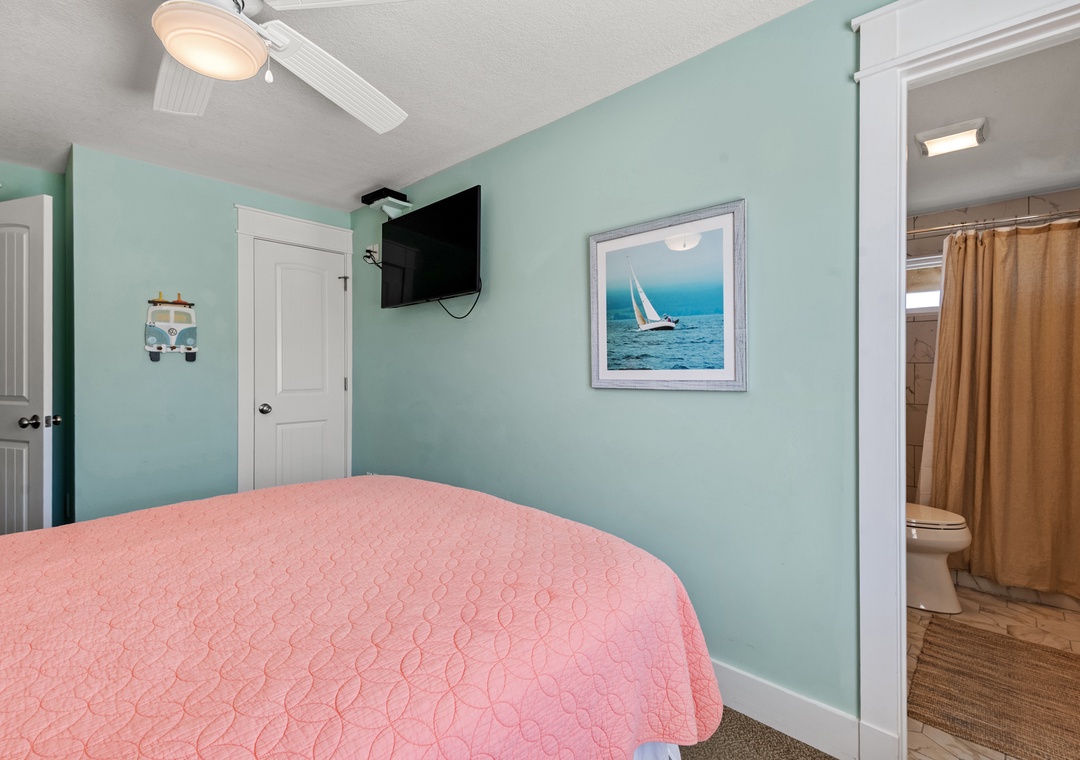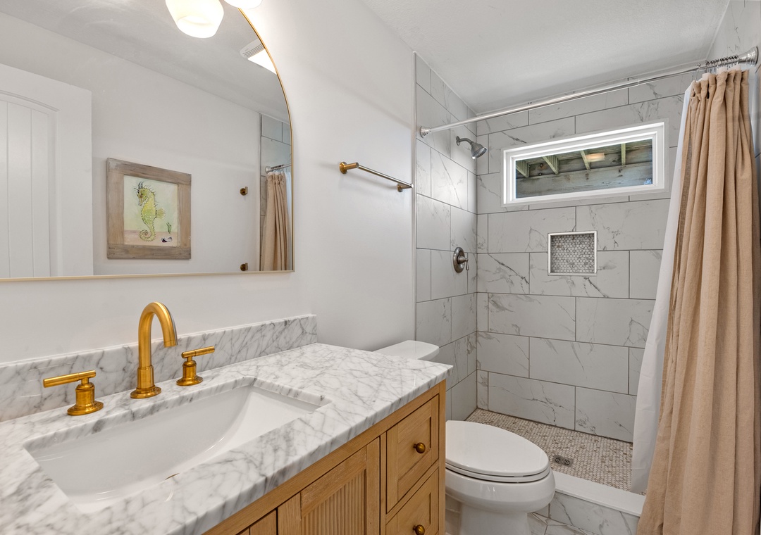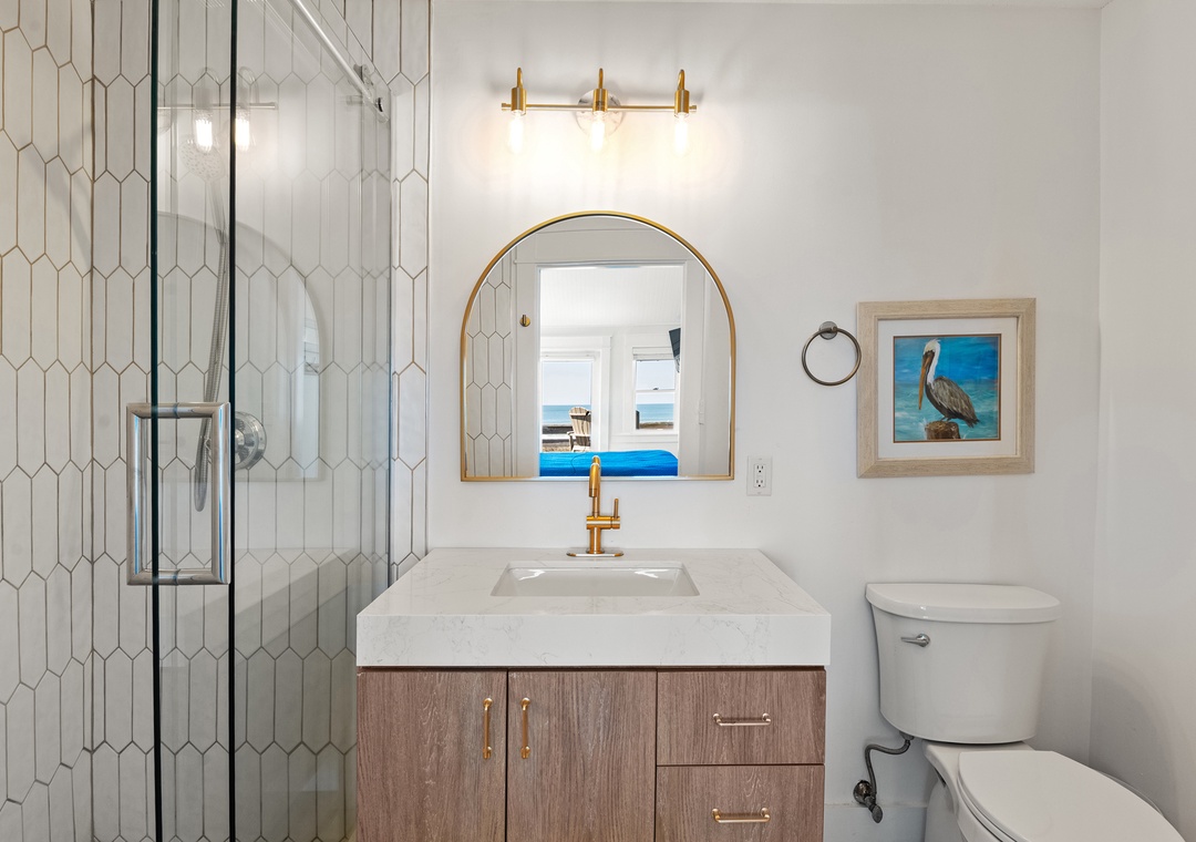 A king ensuite on this top level delivers a true oceanfront retreat, with deck access, sweeping views, and a newly renovated private bath with walk‑in shower. Five additional bedrooms on the mid‑level, including three more ensuites, give everyone in your group plenty of privacy and make the home ideal for multi‑family trips or vacations with grandparents. With 5 newly renovated full baths plus a half bath, getting ready for beach days or dinners out stays easy.