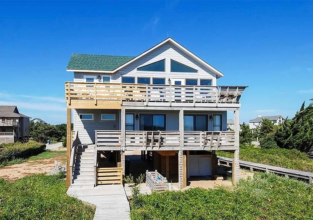 New to the Village Realty program for 2027! Making Memories is a beautifully updated home in Duck situated right on the oceanfront offering panoramic views of the sparkling Atlantic and phenomenal sunrises. Use the private walkway with dunetop deck for effortless access to the uncrowded and pristine beach. Three levels of east-facing decks provide plenty of outdoor space for soaking up the sun, enjoying the salty breezes or unwinding with a relaxing soak in the bubbly hot tub. Located on the northern end of Duck in the Sanderling neighborhood, Making Memories offers guests use of the community's soundfront pool, tennis court, and nature/walking trail.