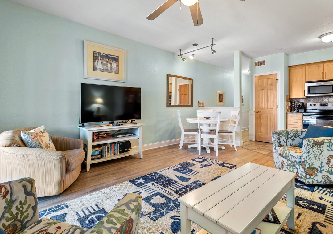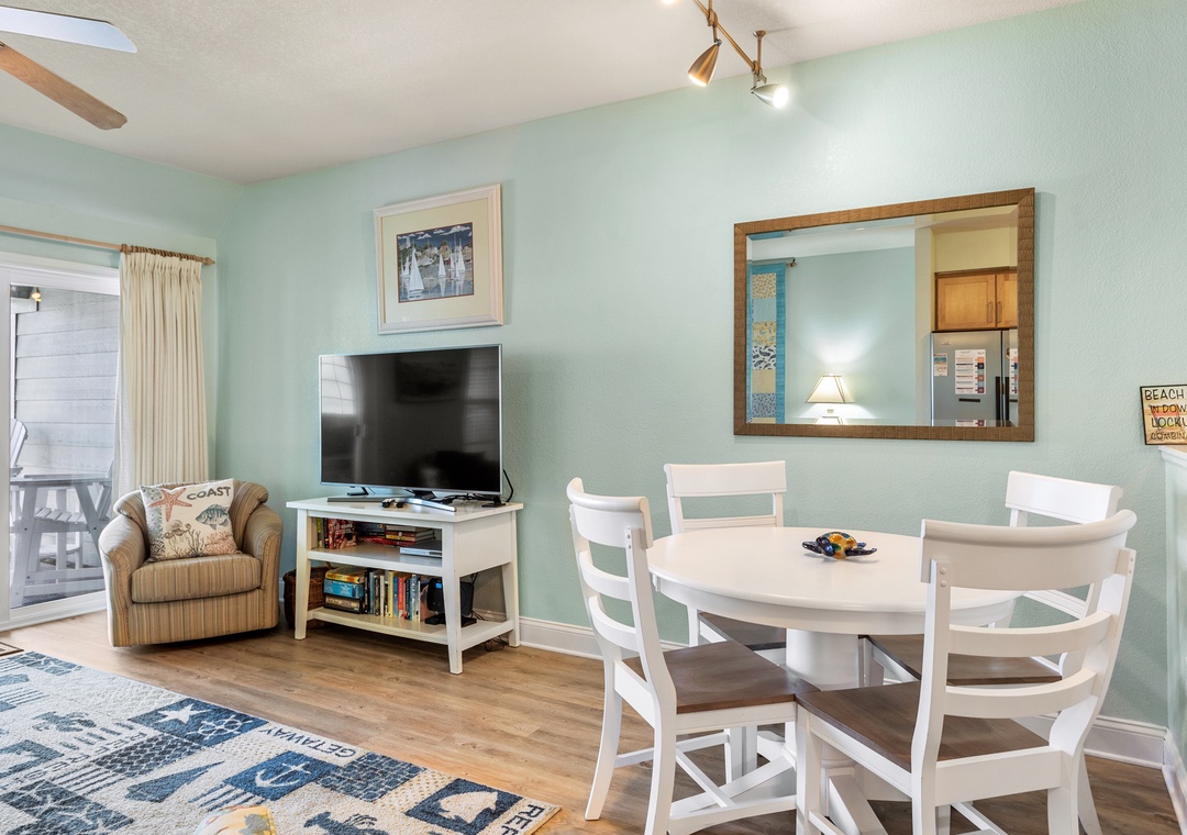 Just right. Simplicity is a 1 bedroom, 1 bath condo located on the north side of the first floor featuring ceramic tile, custom kitchen cabinets, stainless kitchen appliances and a Keurig coffee maker. Community features include an outdoor pool, boardwalk to beach, fitness room with state-of-the-art cardio equipment, and game room with ping pong table. There is wireless internet access available so you can stay connected. Close to area attractions including wonderful OBX restaurants and shops.