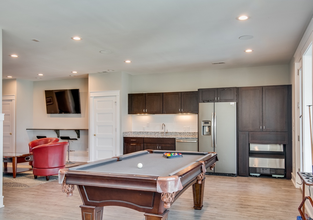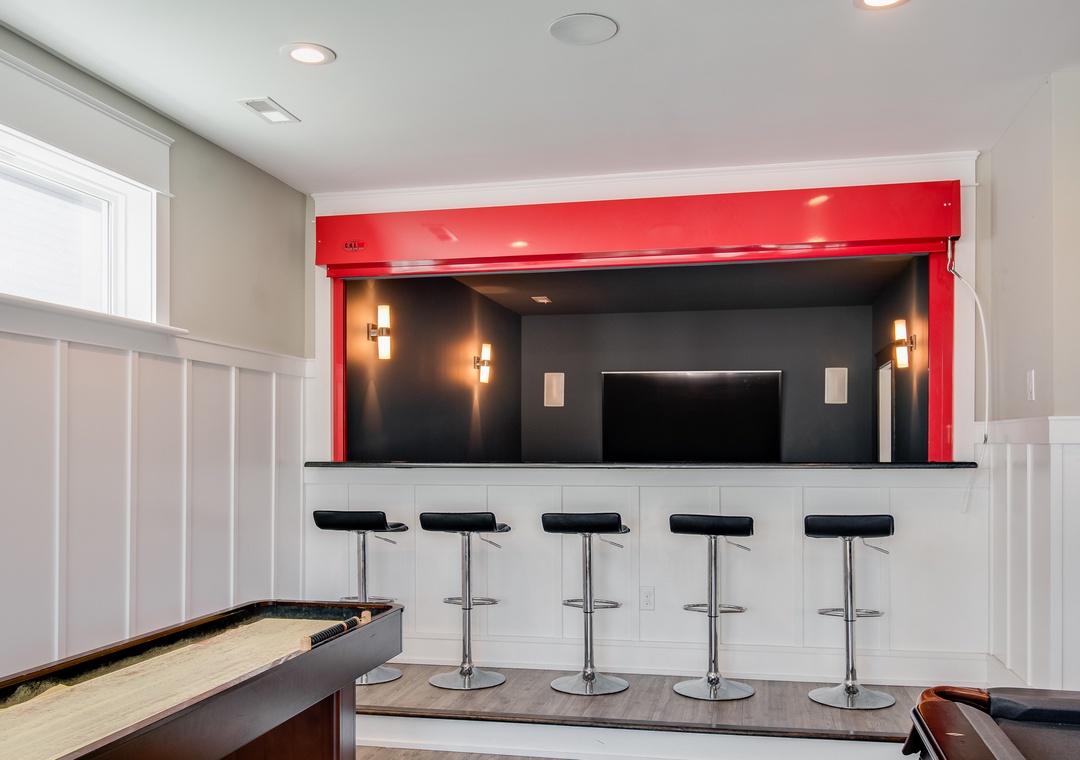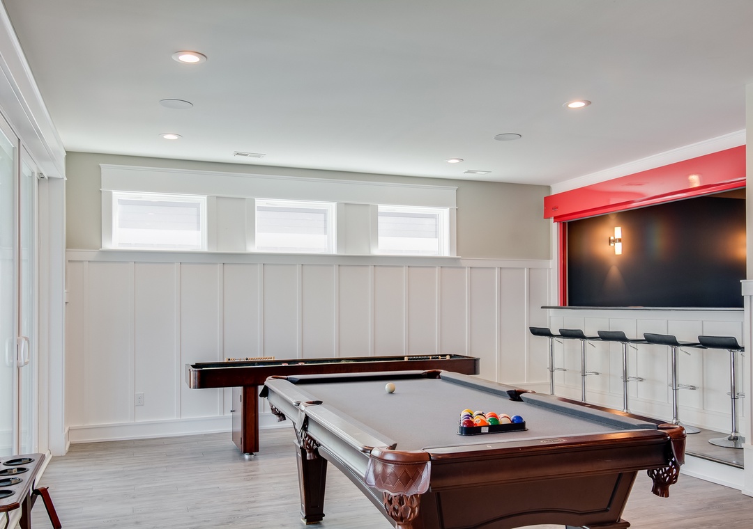 There's never a dull moment at Go Your Own Wave with amenities galore and ample space for everyone to spread out. Enjoy a group movie night or two in the theater room, this a great place to retreat, so sit down, relax on the stadium seating movie chairs, and draw the curtains! You're in for a treat. Then you can venture to the rec room and show off your pool and shuffleboard skills and with the wet bar and full-size refrigerator and microwave, you will be all set for drinks and snacks.