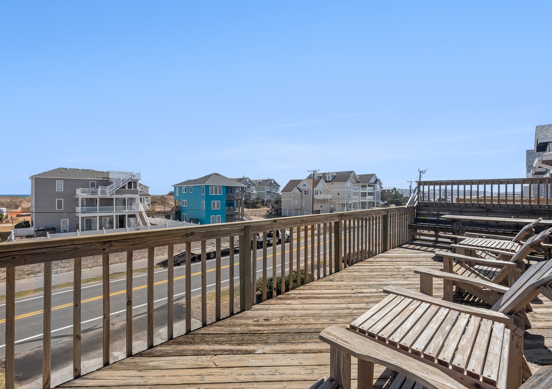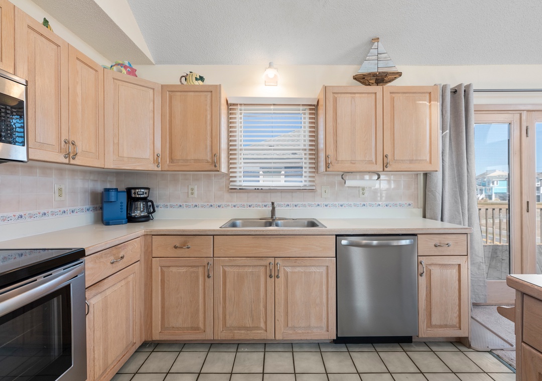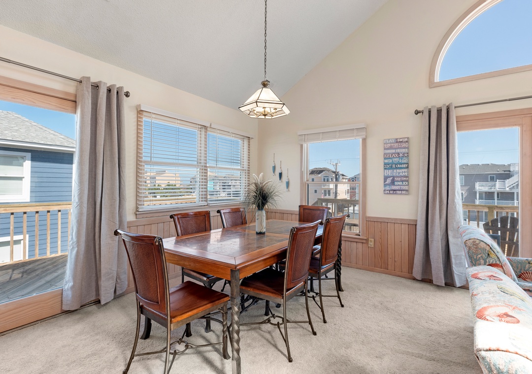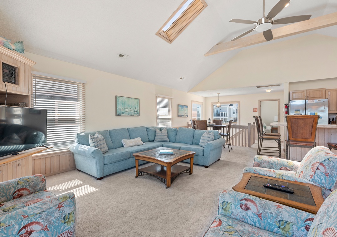 Island State of Mind is a charming semi-oceanfront home in Nags Head situated just 300ft from the Gallery Row public beach access. After a day of sun, sand and surf, the outdoor fun continues back at the house where you can splash in the private pool or take a relaxing soak in the bubbly hot tub. The great room offers plenty of comfortable seating plus an open-concept layout for quality time spent with loved ones. It leads out to an expansive sun deck for effortless indoor/outdoor living and your daily dose of Vitamin D. Back inside, vaulted ceilings and skylights create a bright and casual space with abundant natural light. The chef in the family will appreciate the well-equipped kitchen with stainless steel appliances and bar seating.