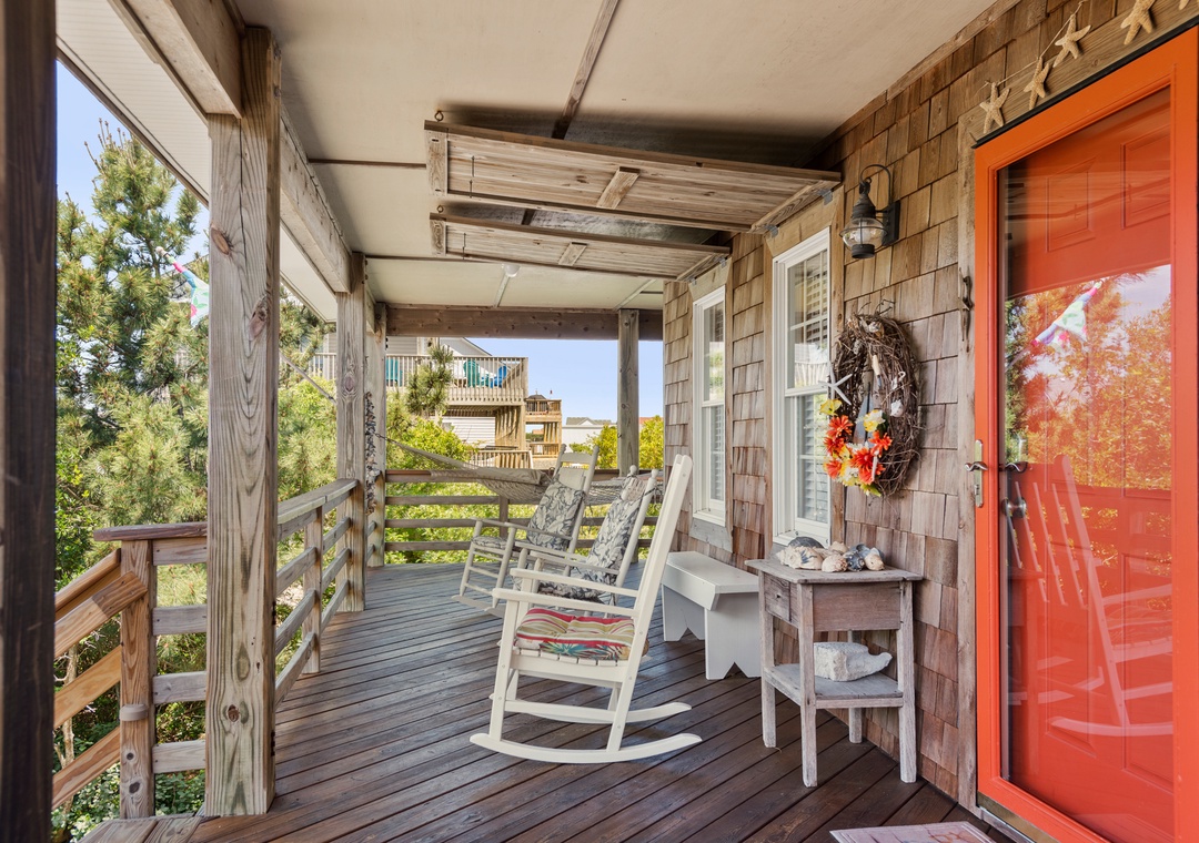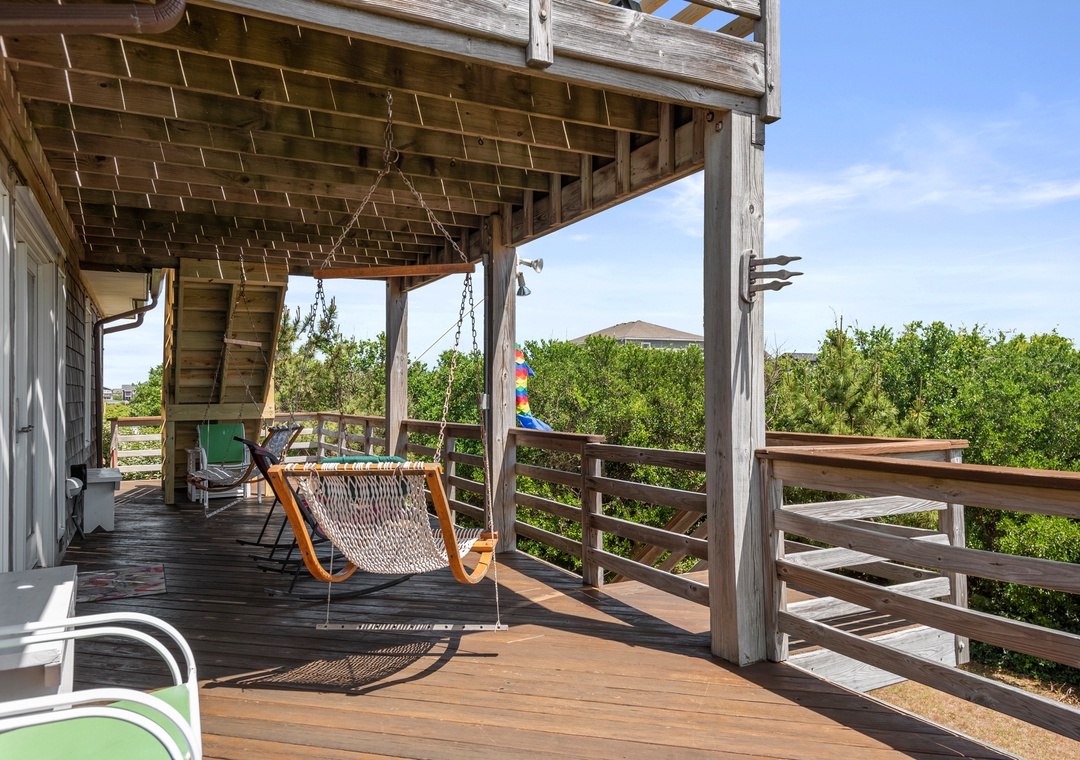 Teacher's Lair was built in the Old Nags Head cottage style of architecture and features gracious and comfortable rooms with all the modern conveniences. Grab your favorite books and sweet tea and enjoy the spacious covered deck or enjoy your morning coffee from the top level sun deck where you can relax, breathe in the salty air and watch the sunrise over the Atlantic. The beautiful Nags Head beach is within walking distance at the E. Abalone Street public beach access, where you can enjoy a fun-filled day surfing, swimming, sunbathing, and searching for shells!