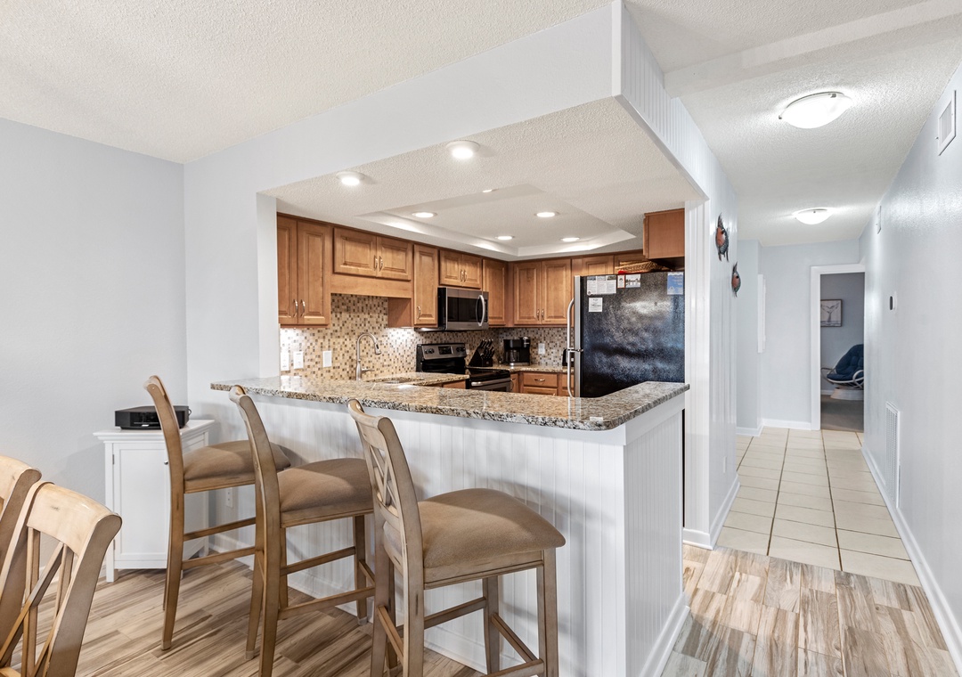 This condo was the perfect space for a family of 6. As simple as it gets in terms of checking in, and no complications finding the place. The condo was extremely clean with everything we needed. Kitchen is stocked with absolutely everything you could think of: Keurig, Blender, Toaster, Crockpot, Griddle top, utensils, silverware, and dinnerware. The walk to the beach was effortless and once you get into the sand, that’s when you realize how special this place truly is. Very private, quiet, and clean. Restaurants and shops around the area are great. We would recommend Blue Moon, or Mulligans. Overall, this is as good as it gets for a rental condo. Would definitely say here again!- Reviewed On: 5/13/2023