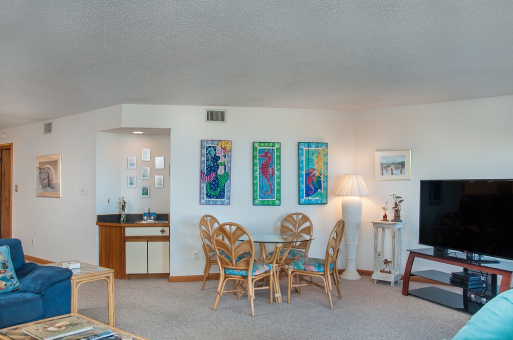 Take deep breaths … go for long walks … watch the sun rise … see the dolphins swim and the ocean change moods from the large, tile balcony … experience the colors of sunset. Relax. Enjoy. You’re on vacation!